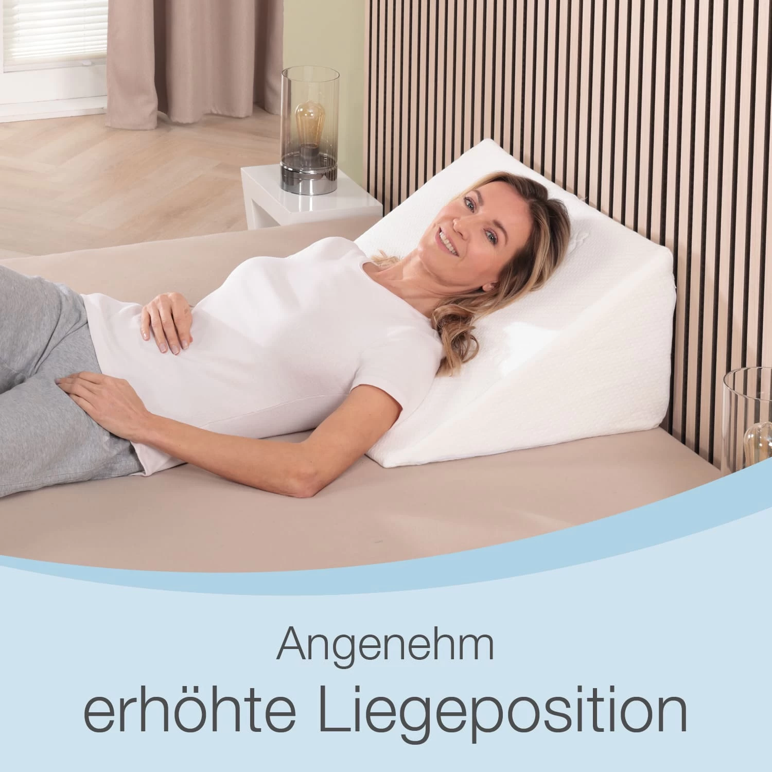 - FÜR EINE ERHÖHTE RUHEPOSITION: Im Liegen können Sie mit dem orthopädischen Keilkissen Ihren Oberkörper oder Ihre Beine einfach und angenehm hochlagern.