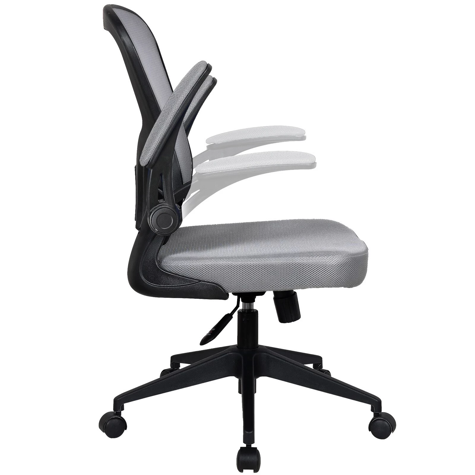 Die Armlehnen des Chefsessels können hochgeklappt werden. Wahlweise kommt der Stuhl mit einer Kopfstütze oder ohne Kopfstütze. Mit dem Hebel lässt sich die Sitzhöhe stufenlos einstellen. Auch eine Wippfunktion ist dabei. Der Rücken wird durch eine spezielle Stütze in ergonomischer Position gehalten.
