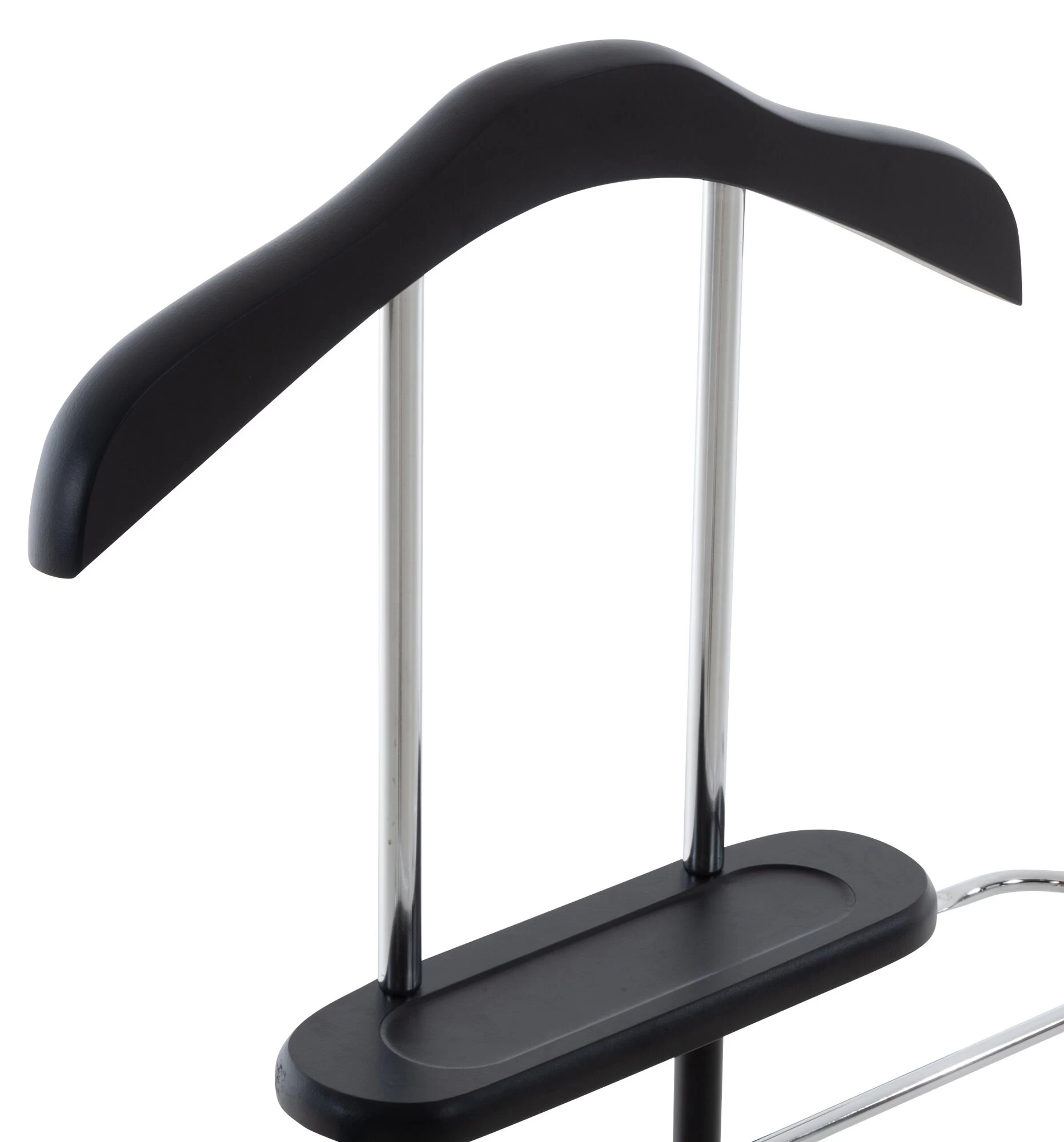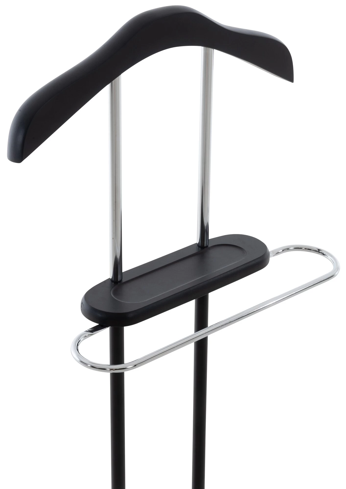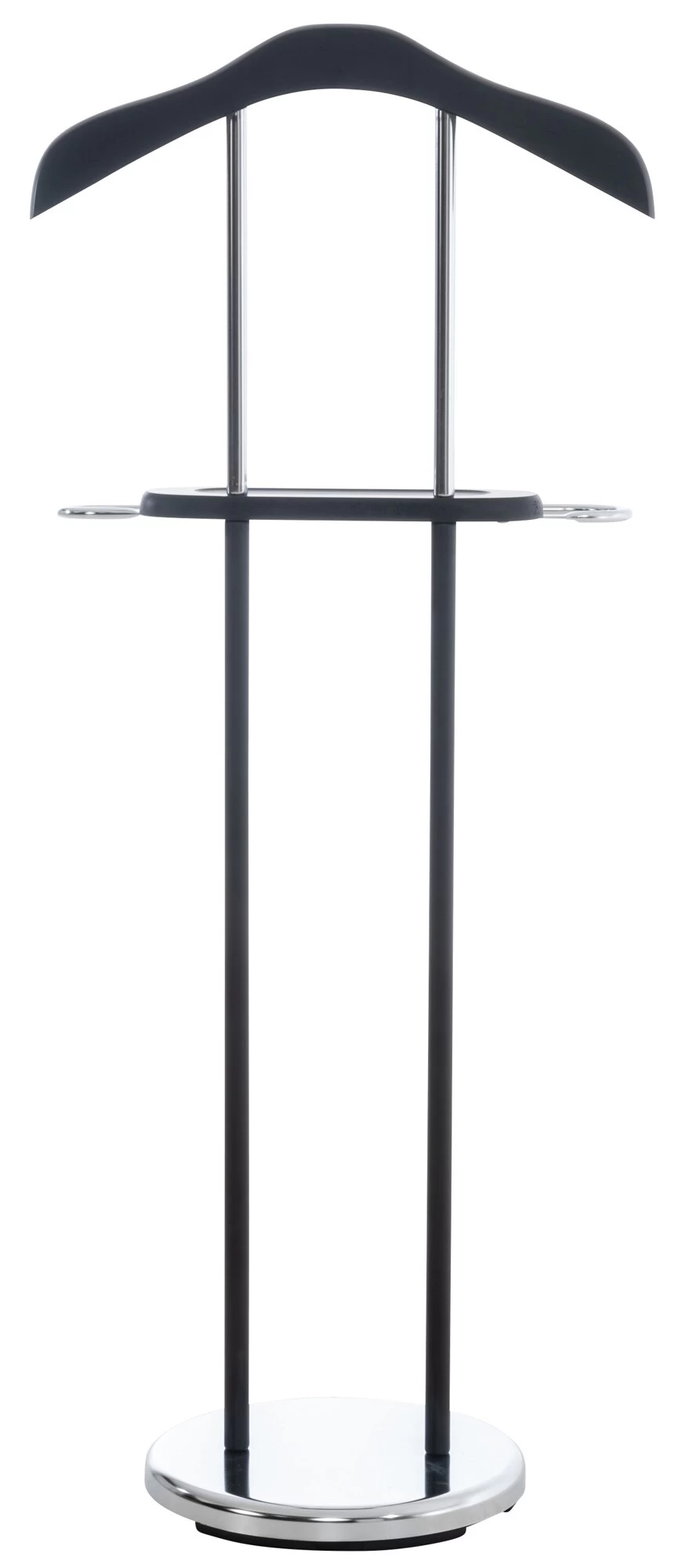 Dieser unisex Herrendiener macht immer eine gute Figur und passt in jedes Ankleide-, Schlaf- und Gästezimmer. Der Kleiderständer ist aus Metall in Chromoptik gefertigt und in verschiedenen Holzfarben erhältlich. Platzsparend und praktisch kann man hier seine Kleidung für den Tag vorbereiten. Der schwere Fuß sorgt für eine gute Standhaftigkeit. Durch den integrierten Kleiderbügel sowie eine Hosenstange lässt sich die Garderobe faltenfrei aufbewahren. Auf der praktischen Ablagefläche können Manschettenknöpfe, Schmuck oder Ähnliches abgelegt werden.