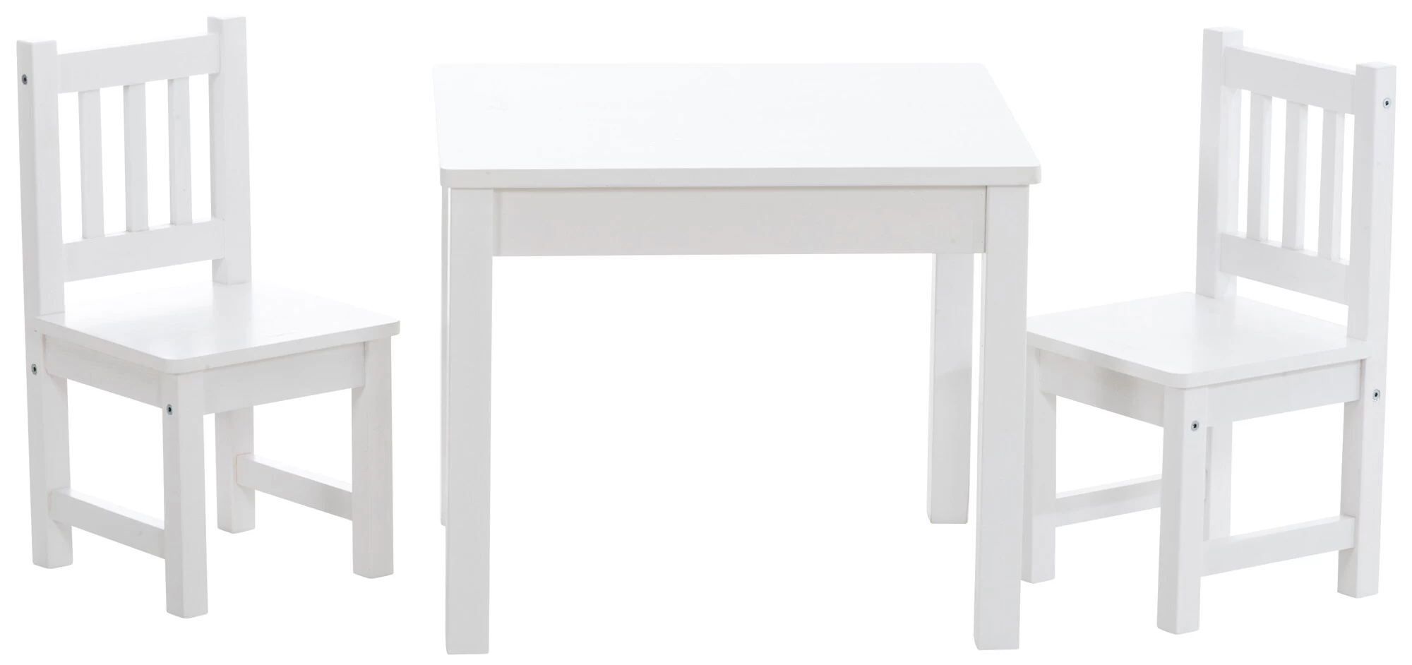 Mit dieser tollen Sitzgruppe kann Ihr aktiver Nachwuchs schon von klein auf bequem und komfortabel am Tisch sitzen, essen, spielen und basteln. Das klassische Dekor und die gute Verarbeitung machen diese schöne Sitzgruppe zu einem idealen Wohnaccessoire. Öffnungen in den Rückenlehnen erleichtern den Standortwechsel. Die Sitzgruppe ist leicht zu reinigen und wurde nach den aktuellsten Sicherheitsstandards entwickelt. Der Tisch und die Stühle haben abgerundete Ecken und keine scharfen Kanten und überzeugen durch eine kindgerechte Bauart. Die Sitzgruppe ist leicht zu montieren und langlebig.