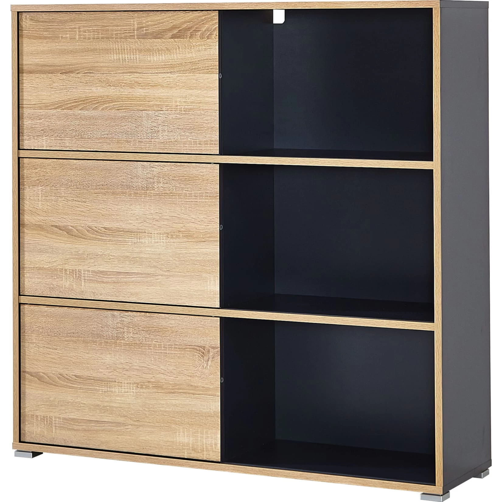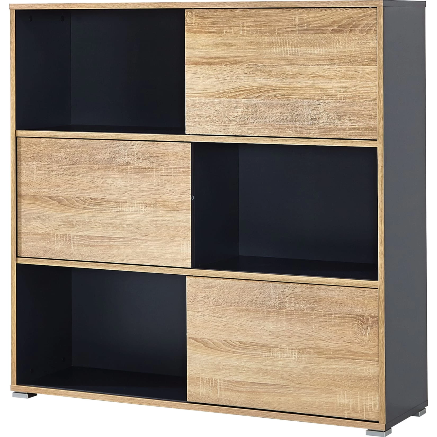 Regal gestalten. Das Möbel ist wahlweise in Anthrazit mit Fronten in