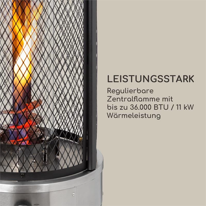 - Leistungsstark: regulierbare Zentralflamme mit bis zu 36.000 BTU / 11 kW Wärmeleistung