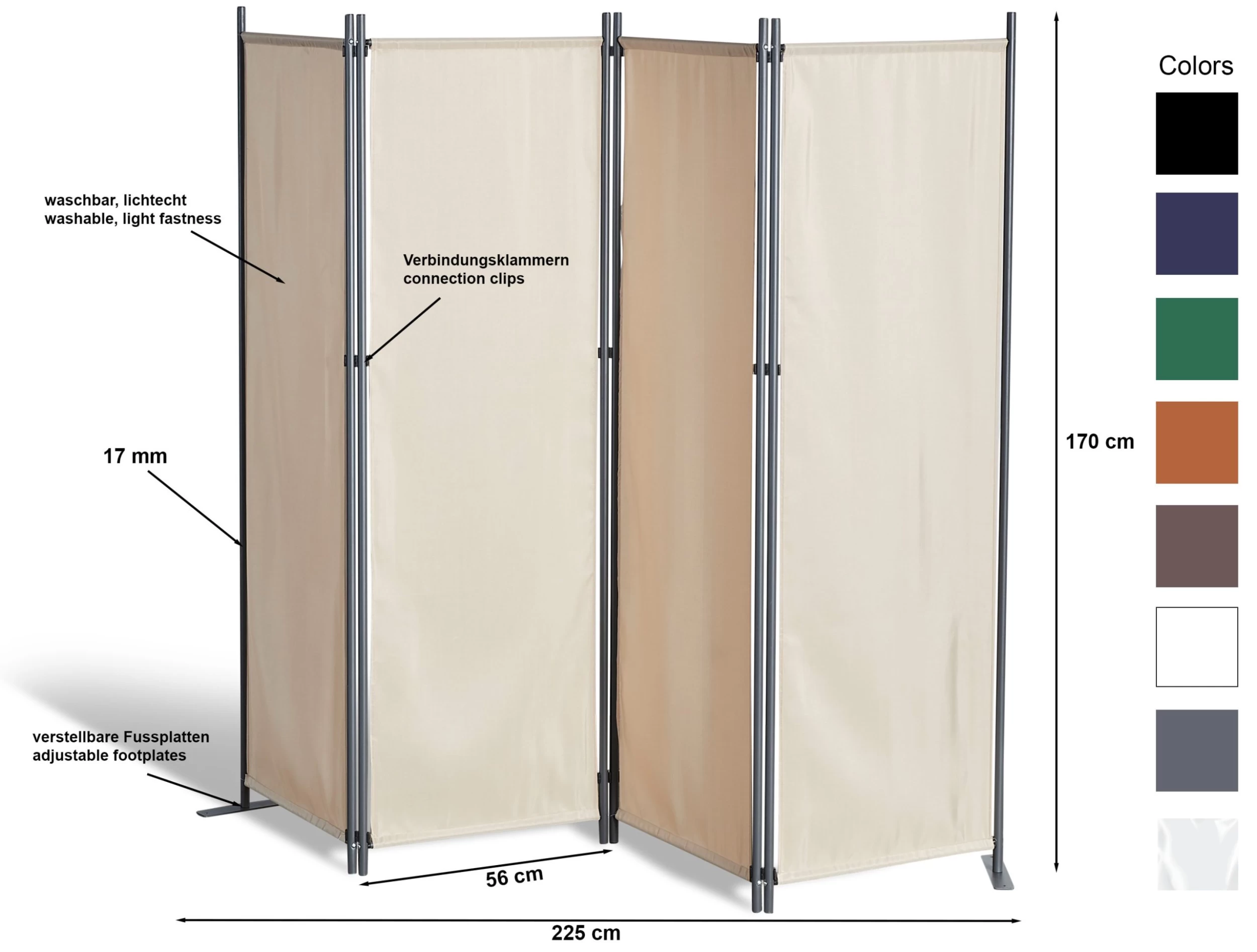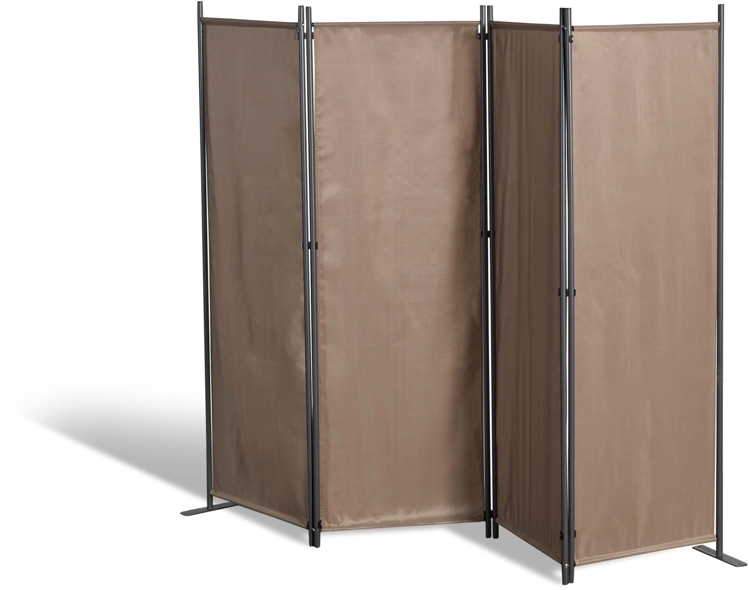 Unser vierteiliger Paravent – 225x170cm – in der Farbe Taupe, ist ein Alleskönner – Raumteiler, Trennwand, Sicht- und Windschutz.