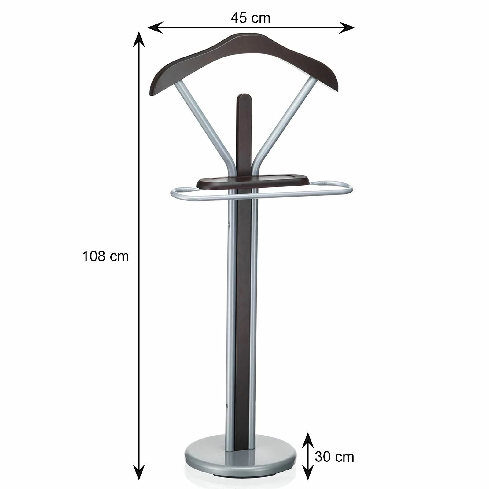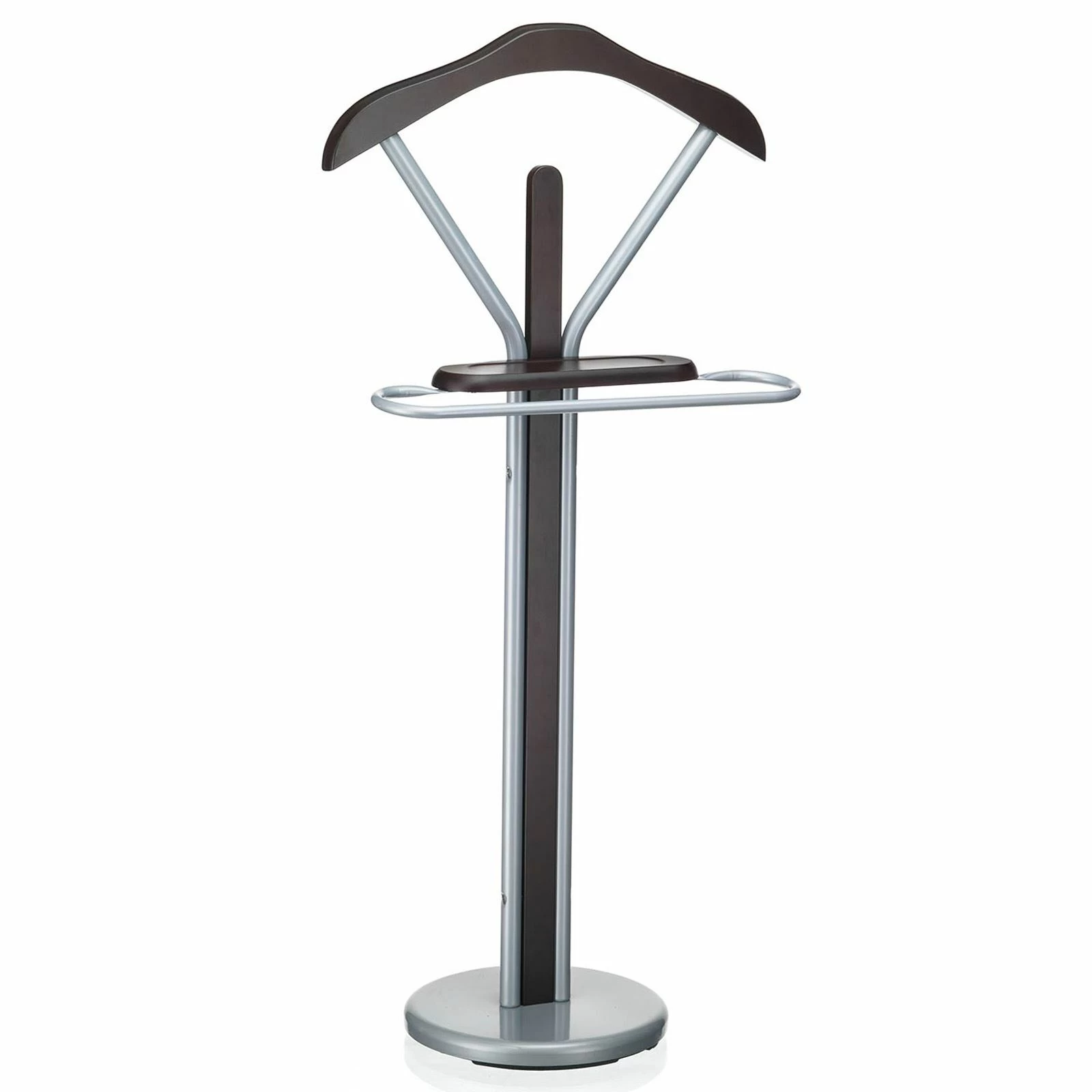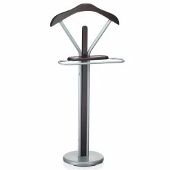 hilft Ordnung im Schlafzimmer zu halten. Die modische und stabile Kombination aus lackierter MDF-Platte und alufarbenen oder verchromtem Metall passt in die meisten Einrichtungsstile und verleiht ihnen ein zauberhaftes Ambiente. Der Herrendiener ist mit einem Kleiderbügel und mit einem Hosenbügel ausgestattet, dadurch ist das knitterfreie Ablegen von Hemden, Jacken und anderen Kleidungsstücken möglich. Mobiltelefon, Schmuck oder Portemonnaie liegen auf der praktischen Ablage des Kleiderbutlers immer griffbereit.