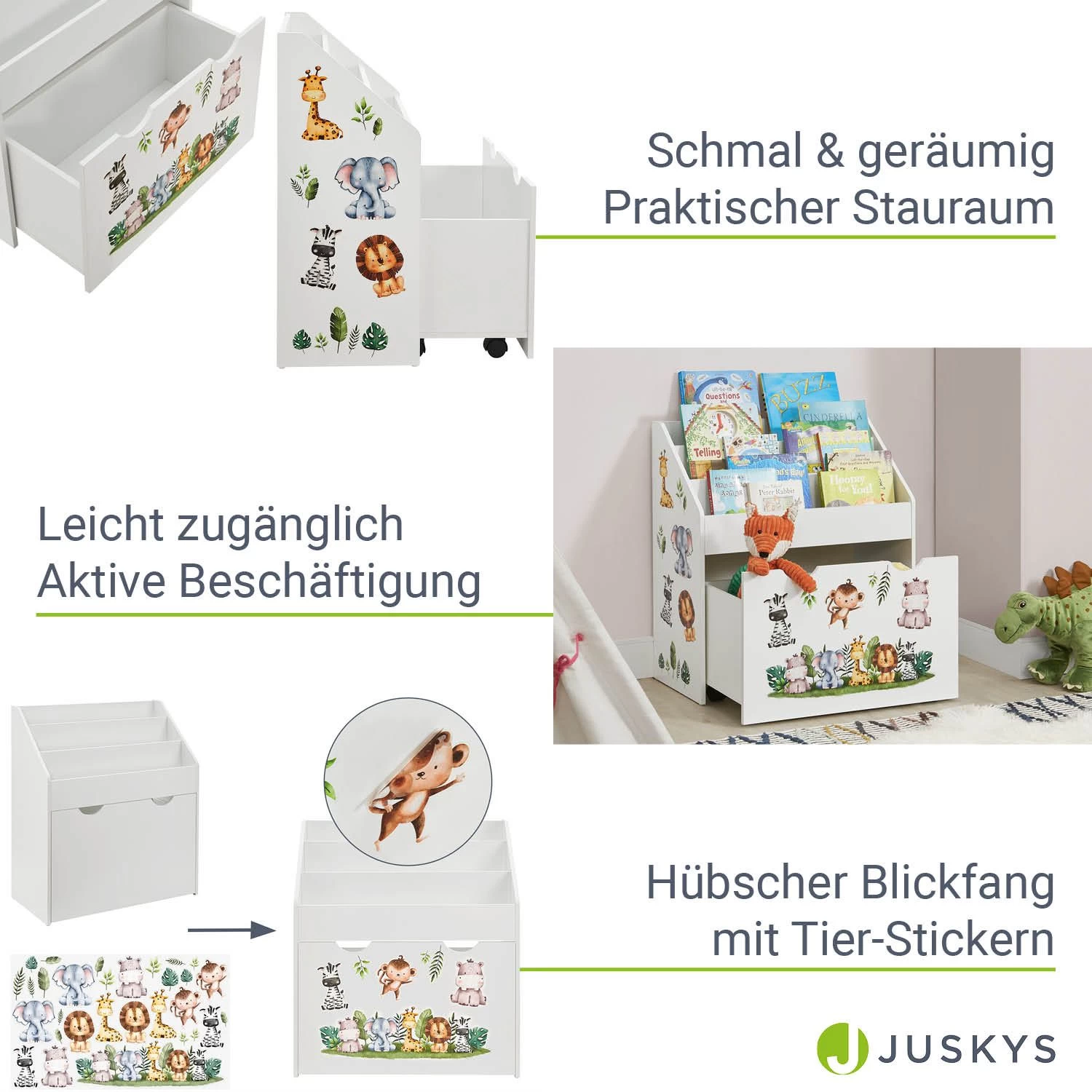- Ordentliche Aufbewahrung von Büchern & Spielzeug