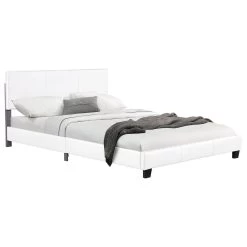 Das gemütliche Polsterbett Bolonia (140×200 cm, weiß) ist ein schlichtes, aber zugleich schönes Kunstlederbett für Erwachsene, Jugendliche und Kinder. Es hat ein flaches Profil mit einem weich gepolsterten Kopfteil. In Ihrem Gäste- oder Schlafzimmer wird es mit seiner zurückhaltenden Eleganz viele Blicke auf sich ziehen. Der inbegriffene Lattenrost bietet ideale Stützkraft für Ihre 140×200 cm große Matratze. Sie liegen darauf optimal, um gesund und erholsam zu schlafen.