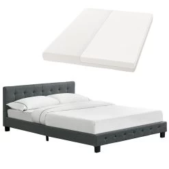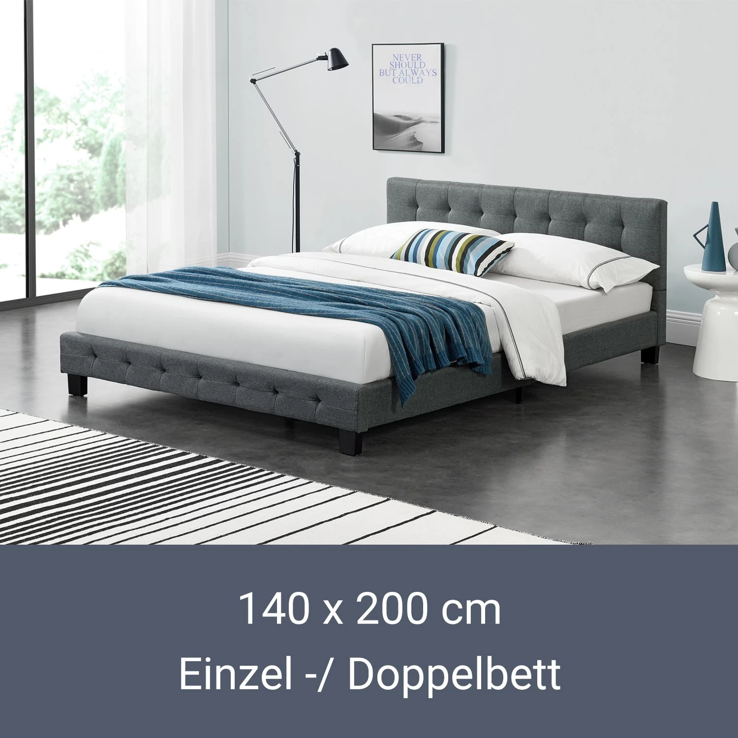 Mit unserem gemütlichen Polsterbett Manresa (140 x 200 cm) mit Lattenrost und Matratze holen Sie sich eine stilvolle Wohlfühloase in Ihr Schlafzimmer. Die klassisch-gesteppte Polsterung mit weichem Stoff-Überzug wirkt einladend und gewährleistet einen erholsamen Schlaf. Das moderne Bett überzeugt durch viel Komfort und eine hohe Stabilität. Der robuste Lattenrost mit sichernder Mittelleiste stützt die ergonomische Kaltschaummatratze ideal ab. Kuscheln Sie sich in Ihre Kissen und verbringen Sie traumhaft entspannte Nächte in Ihrem neuen Schlafparadies. Sie werden ausgeruht und mit frischer Energie in Ihren Tag starten.