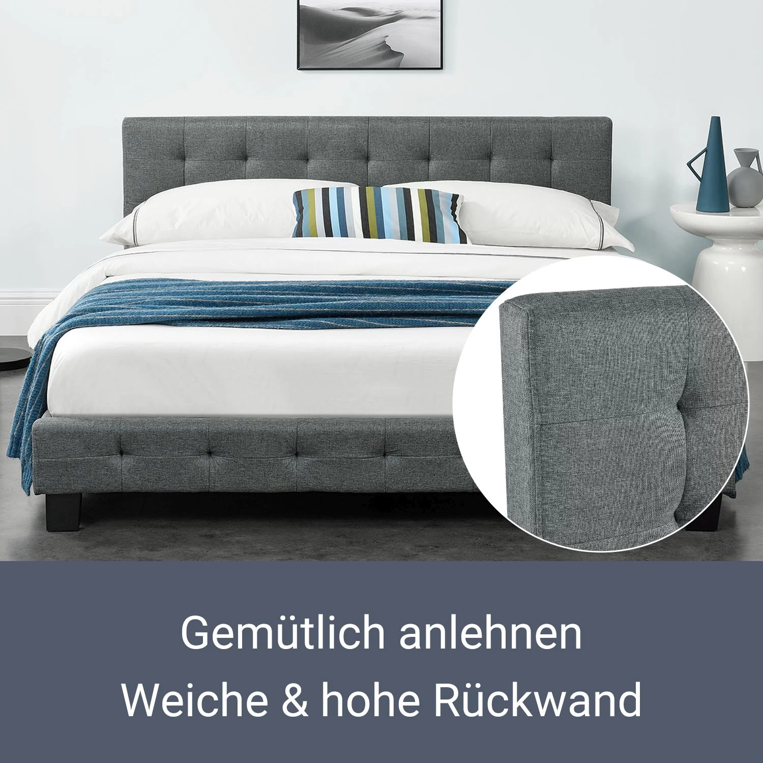 - Weicher und pflegeleichter Textil-Bezug