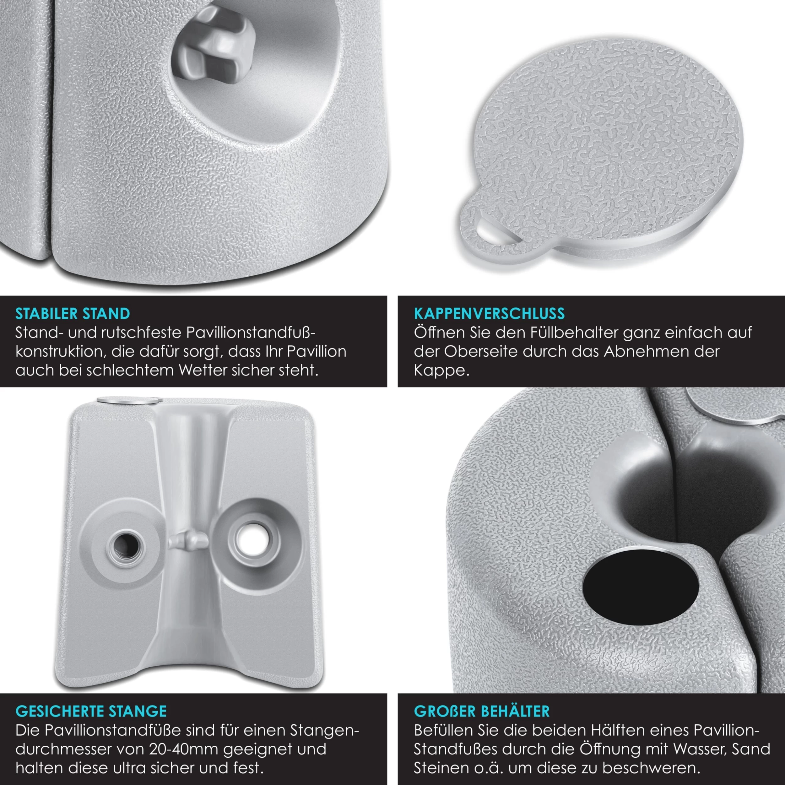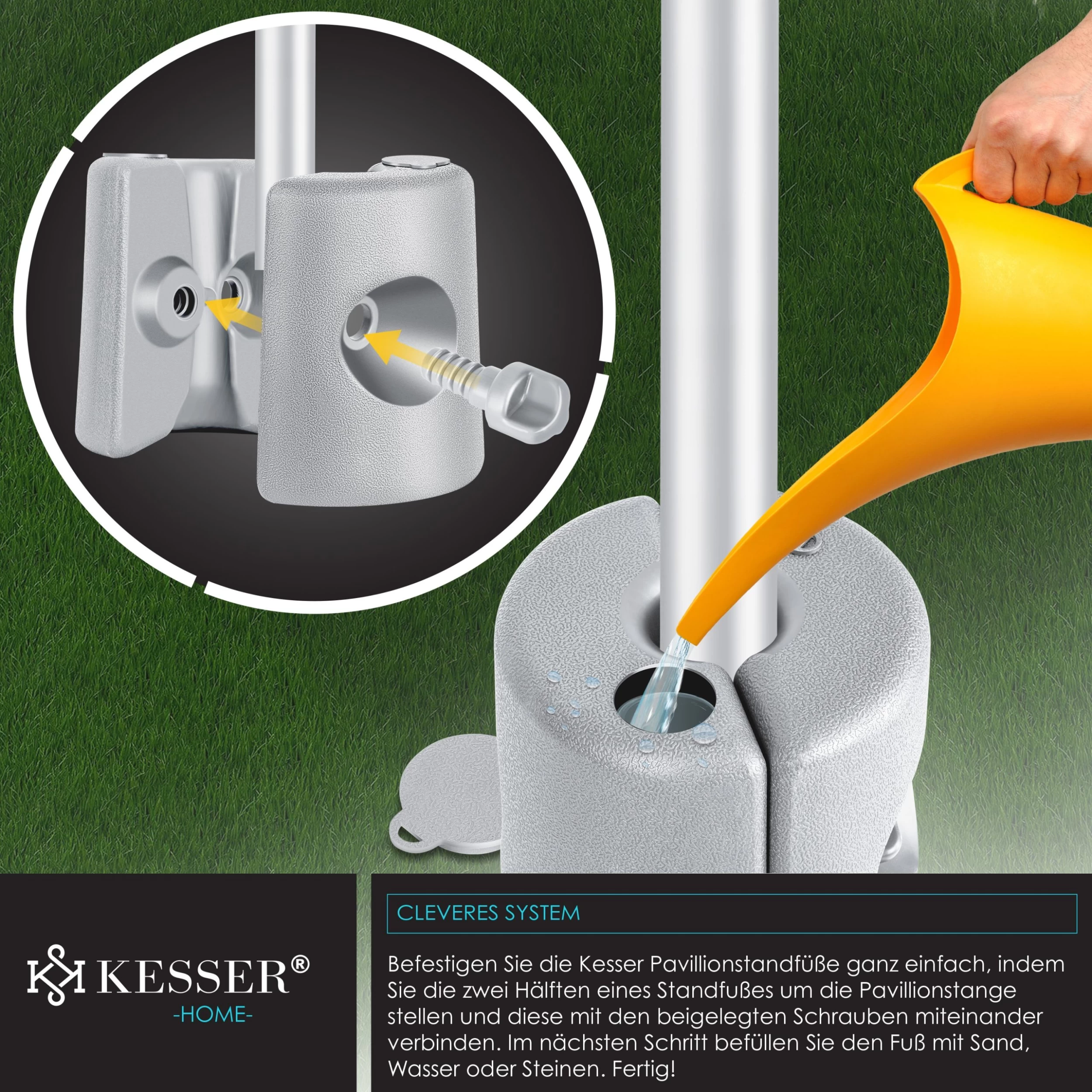 KESSER Pavillonstandfüße 4er Set – für ein ultrastabiles Pavillon bei jedem Wetter, einfache Montage, cleveres Befüllsystem mit Sand, Wasser oder Steinen, schlichtes Design und ein robustes Material welches Schlechtwetter gegenüber beständig ist