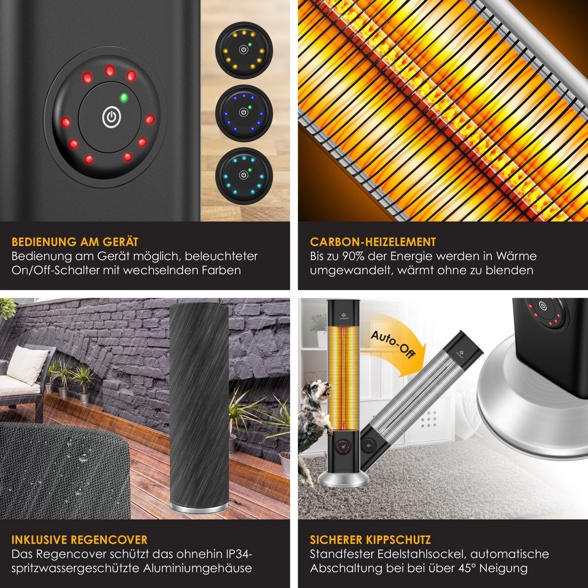 KESSER Standheizung, Infrarotstrahler per Fernbedienung steuerbar, Indoor und Outdoor, Zweistufige Wärme, inkl. LED-Beleuchtung