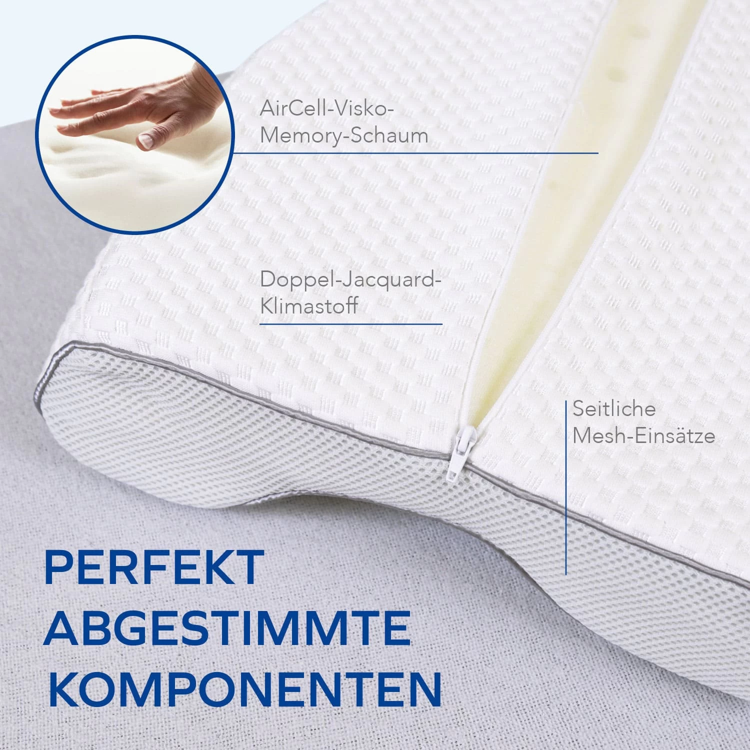 - KLIMA-BEZUG: Der Außenbezug aus einem Doppel-Jacquard-Klimastoff sorgt dafür, dass Sie mit diesem Kissen zu jeder Jahreszeit ein angenehmes Schlafklima genießen.