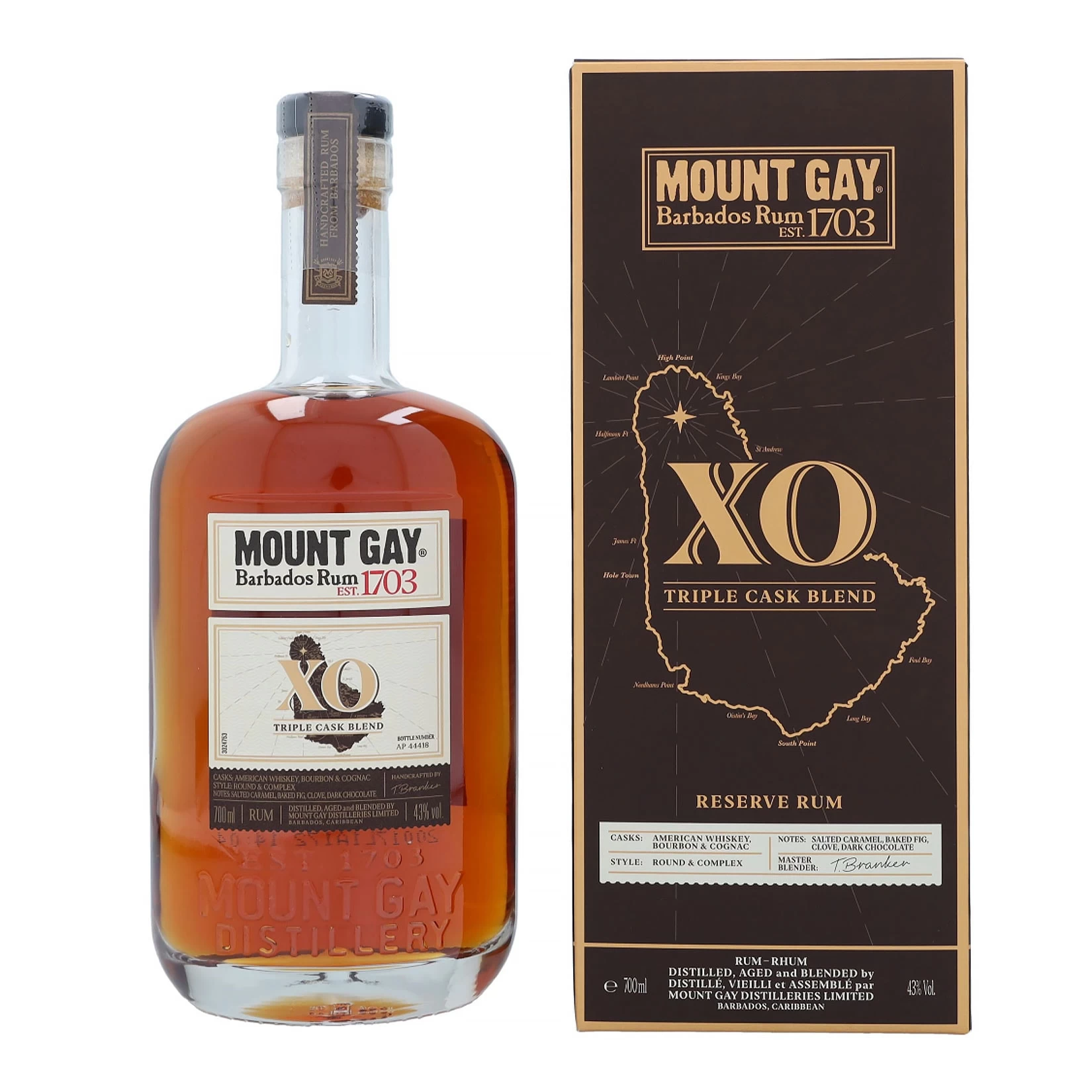 Der dunkle bernsteinfarbende Mount Gay duftet mit einer Fruchtigkeit im Glas, die an Rum-Rosinen erinnert.