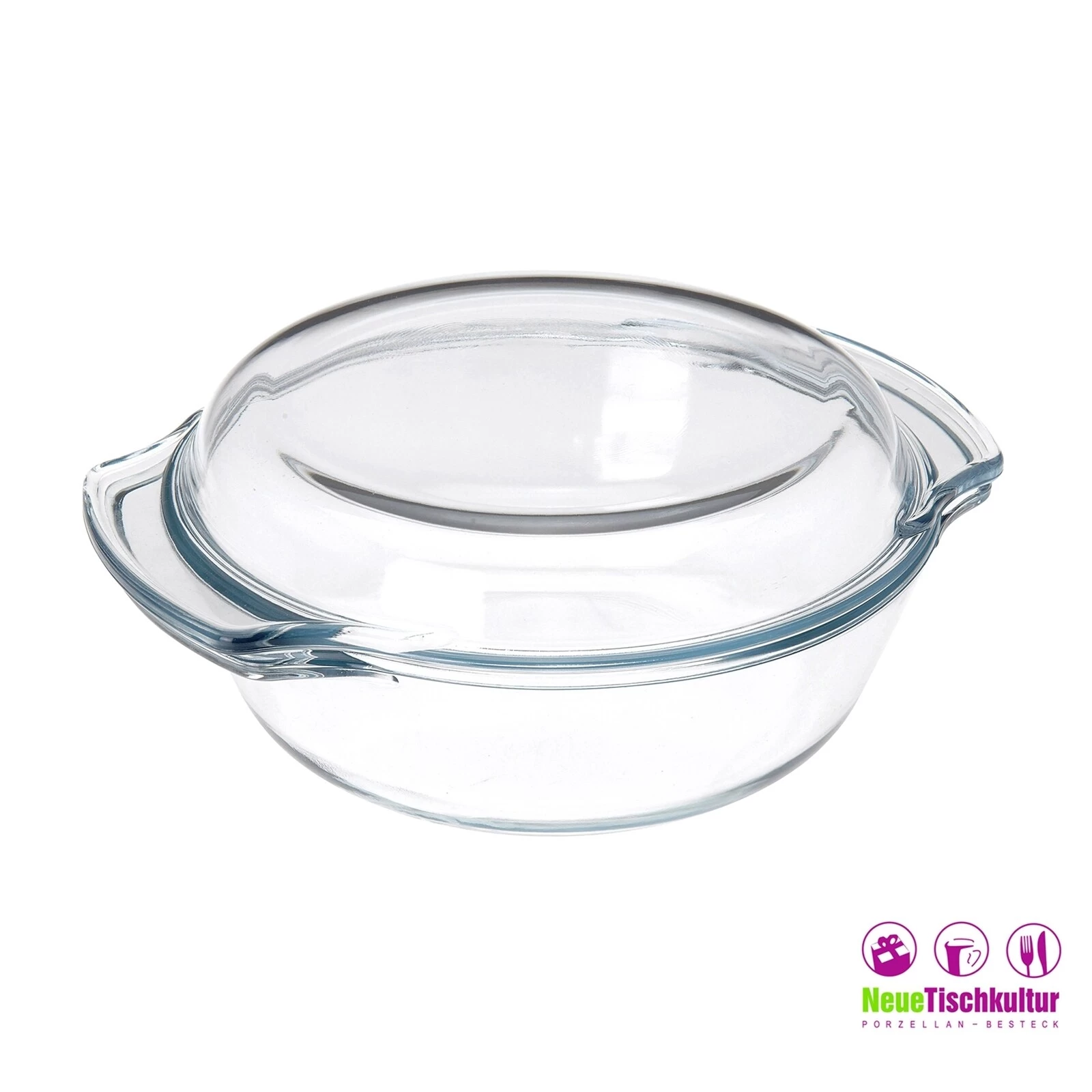 Auflaufform Hitzebeständig, rund, 2,4l Bräter Glasschale mit Deckel: Hergestellt aus hochwertigem Borosilikatglas, das gegen die Temperaturen von -40°C bis +300°C beständig ist. Der Bräter kann in allen Arten von Öfen und Mikrowellen verwendet werden und ist Spülmaschinengeeignet. Das Set umfasst zwei Elemente, die getrennt oder zusammen verwendet werden können – dann kann eine der Schalen als eine Abdeckung dienen. Bei der Anwendung das Prinzip des langsamen Aufheizens und Abkühlens beachten, kein kaltes, sondern lauwarmes Wasser hinzufügen. Die Auflaufschale gibt es 4 verschiedenen Größen: (ca. Maße cm) 27 x 19 x 8 mit 2,4 L, 34 x 22 x 10,2 mit 5,1 L, 34 x 22,5 x 8 mit 4,1 L, 34 x 21,5 x 18 mit 7 L