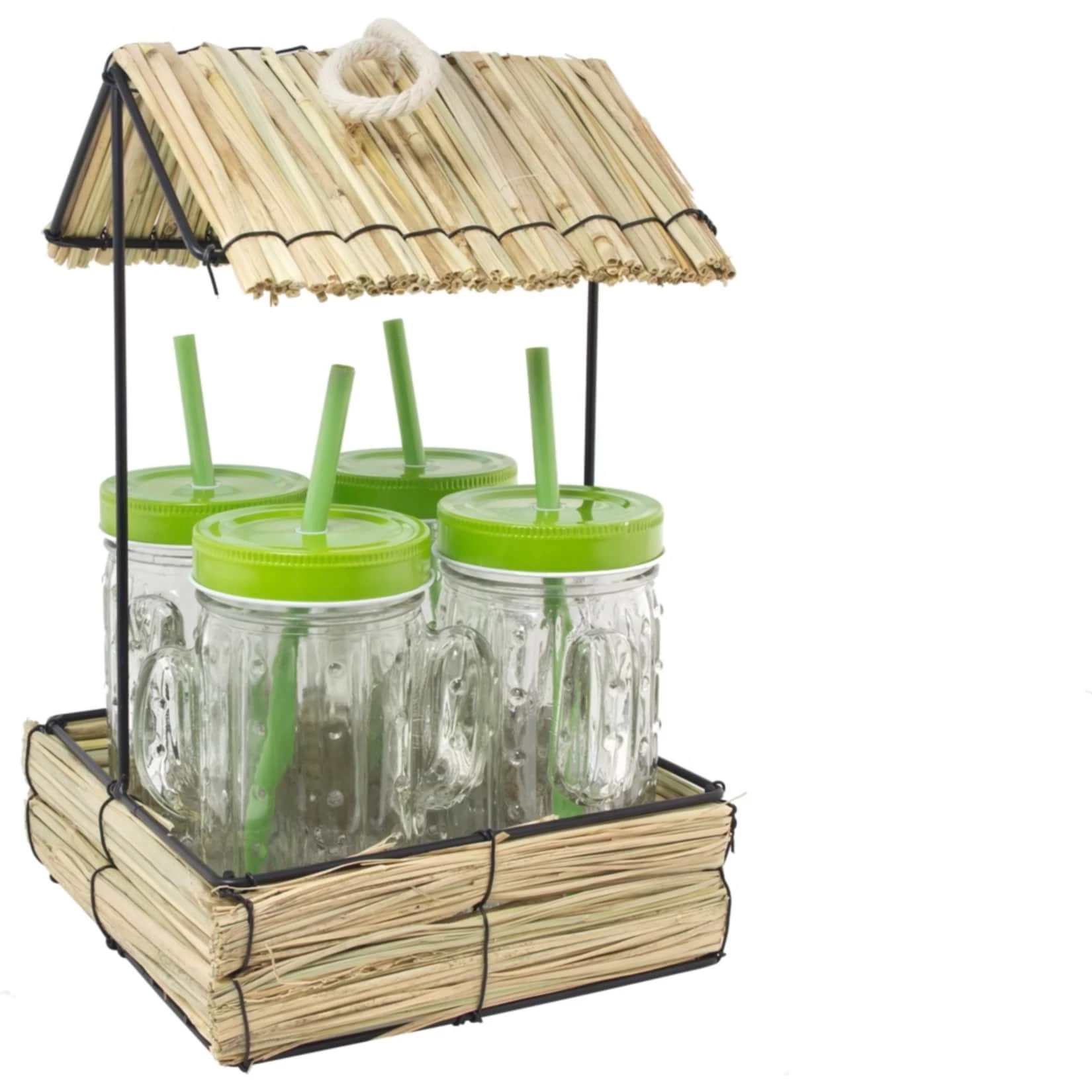 Originelle Hütte „Kaktus“ mit 4 Flaschen aus geprägtem Glas: Der perfekte Weg, um Ihre Getränke auf unterhaltsame Weise kühl zu stellen. Dieser Holz-Schauer bietet Platz für 4 schöne Limonadenbecher, kann aber auch für andere Zwecke genutzt werden. Eine schöne Idee zu einer Themenparty. Durchmesser 25 cm, Breite 18 cm, Höhe 27 cm, Länge 17 cm, Nutzinhalt 300 ml