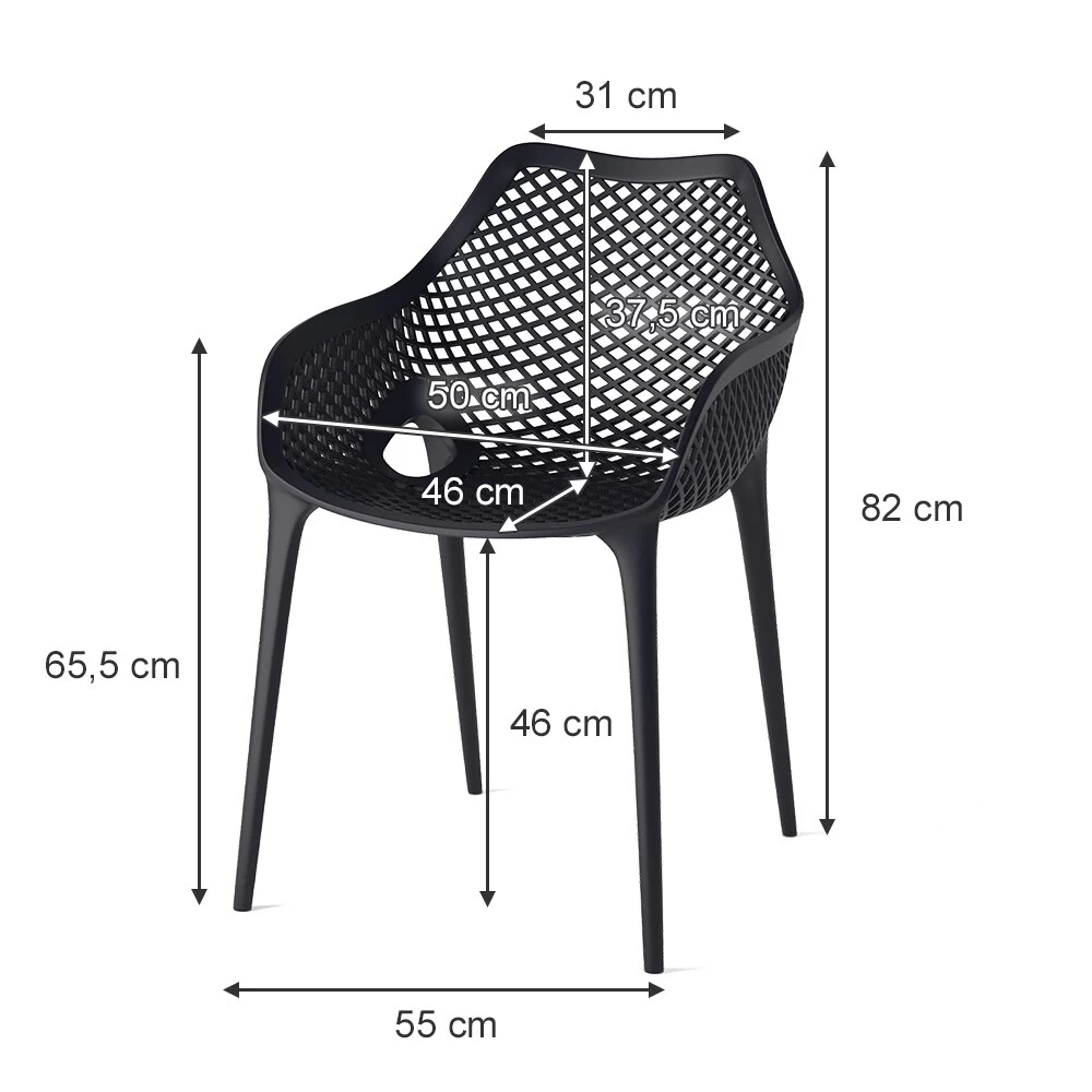 • Der Gartenstuhl ist aus witterungsbeständigem und wasserresistentem Kunststoff gefertigt.