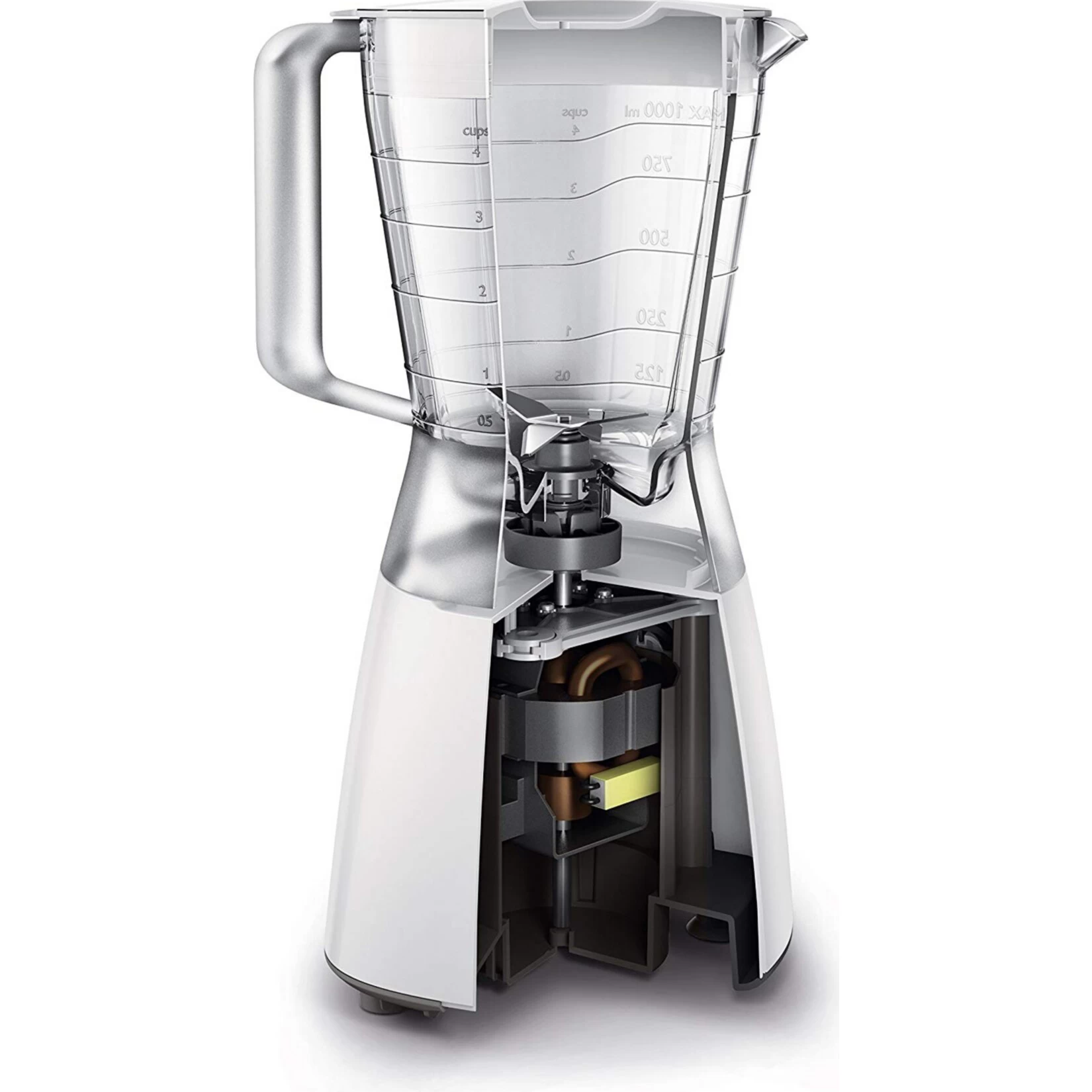 Ob leckere Smoothies, feine Saucen, Gewürze zerkleinern oder Eis crashen. Der Philips HR2056/0 Via Blender bietet all das durch das hochwertige 4 Sternmesser aus Edelstahl und den 350-Watt-Motor. Der stabile Krug aus Kunststoff, fasst bis zu 1,25 Liter an Flüssigkeiten. So können Sie weiche oder auch harte Zutaten ganz einfach zerkleinern und bequem ausgießen. Genießen Sie jederzeit einen gesunden Smoothie, Shakes und vieles mehr mit dem Philips HR2056/0 Via Blender.