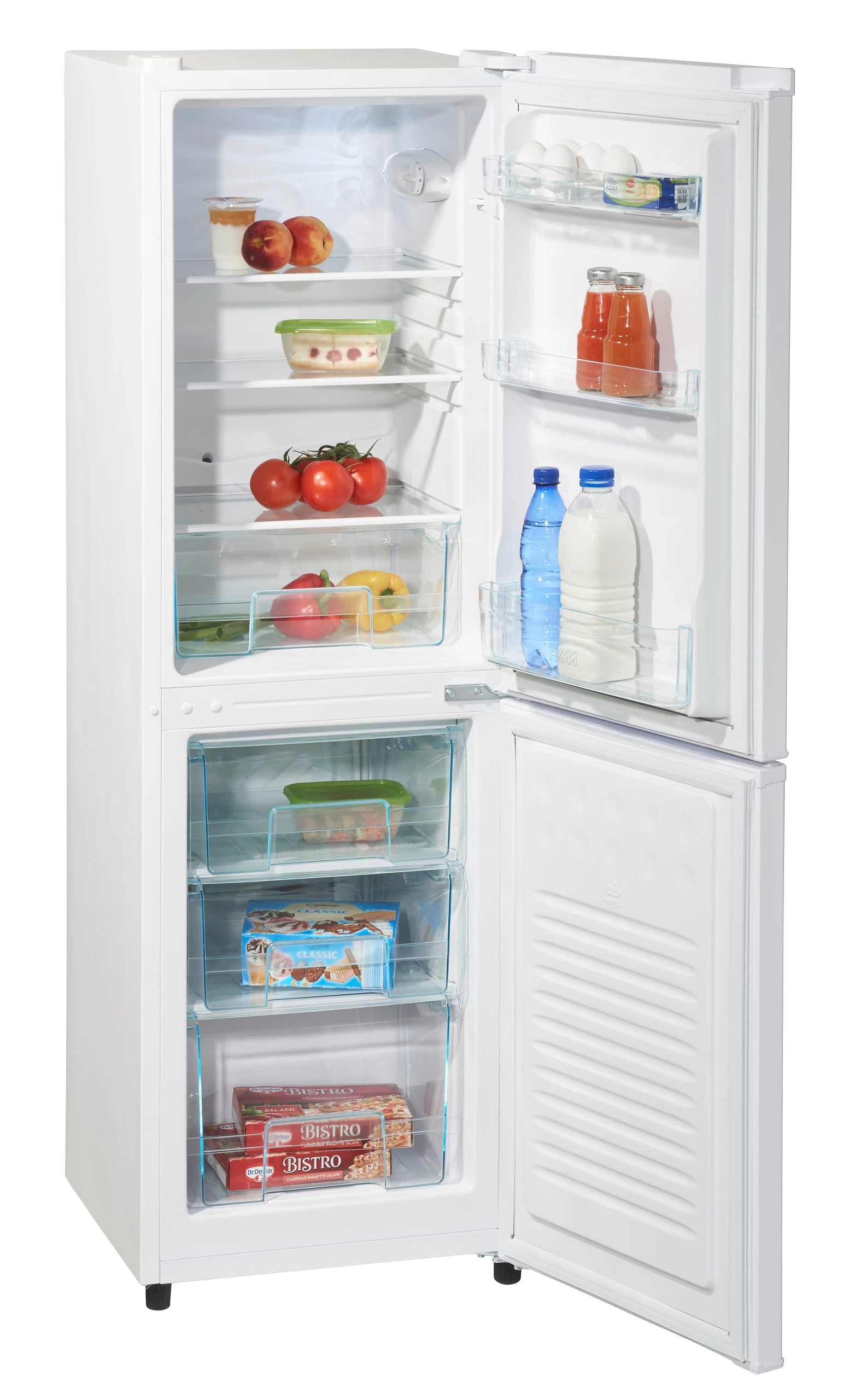 Die Gefrier-Kühlkombination KG 162.4A+ weiß von KPM punktet durch seine kompakten Abmessungen. Mit 153 Litern Volumen ist üppiger Raum für Ihre Lebensmittel. Der Kühlraum verfügt mit 99 Litern und 3 Türablagen, sowie einem Eiereinsatz für bis zu 6 Eier über alles was man im Alltag benötigt. Mit einem automatischen Abtauvorgang im Kühlteil sowie einem leisen Betrieb, mit einer Lautstärke von nur 40 dB/A, ist diese Kühl-Gefrierkombination sinnvoller Bestandteil jeder Küche.