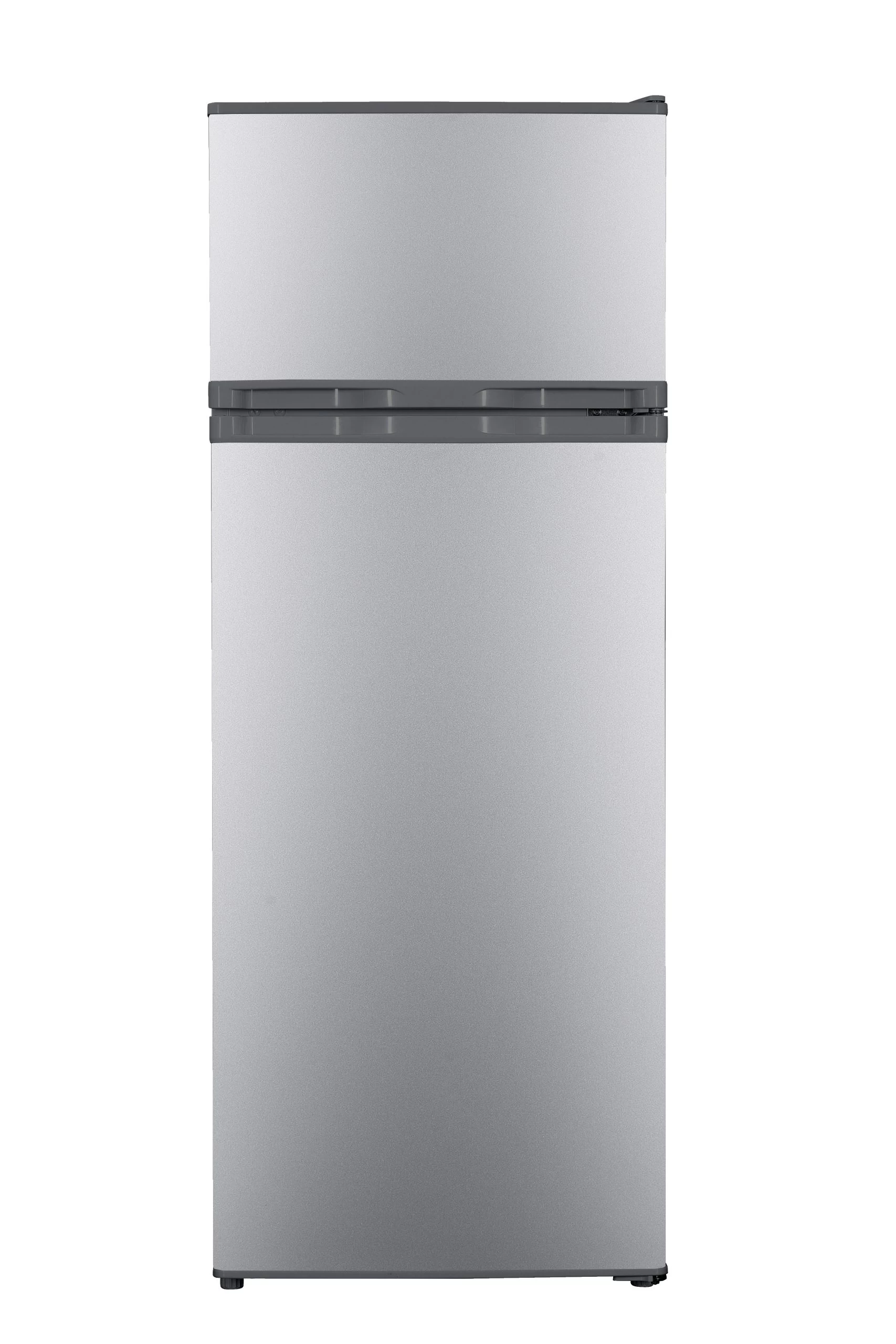 Front und Seiten lackiert in edlem INOX-Design. Mit seiner zeitlosen Form passt der Kühlschrank in jeden Haushalt. Zwei Türen mit integrierten Griffen unterteilen das Gerät in Kühl- und Gefrierbereich.