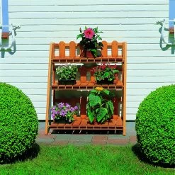 Blütenschmuck für kahle Hauswände: Diese Blumenetagerie bildet die richtige Kulisse für einen farbenprächtigen Auftritt zahlreicher Blumen. Kiefernholz, wetterfest imprägniert. Maße: L 78,5 x B 42 x H 90 cm