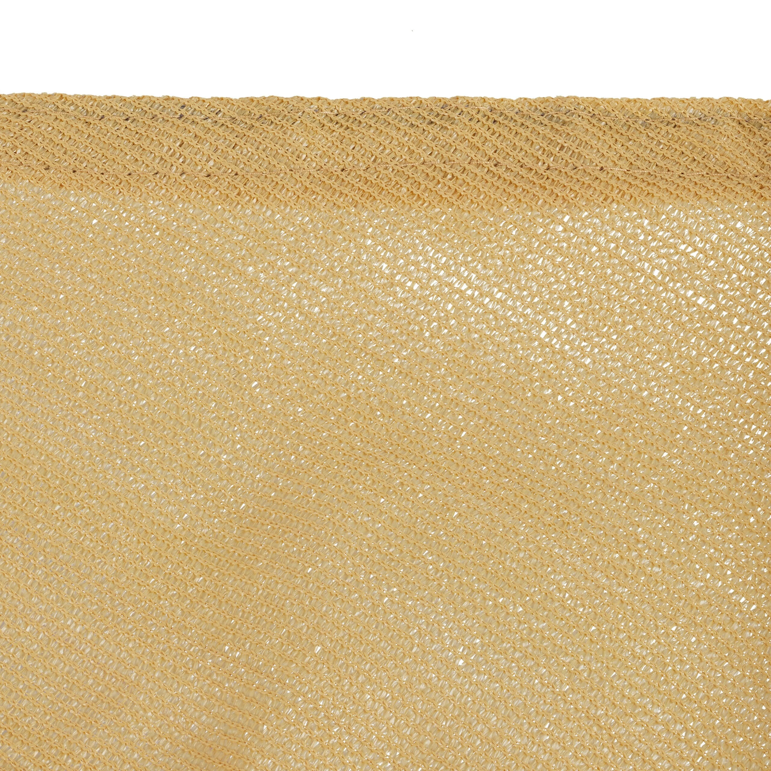 Das dreieckige Balkonsegel aus robustem HDPE-Gewebe spendet nicht nur großzügig Schatten, es bietet zugleich einen wirksamen UV-Schutz. Das sandfarbene Segel ist überdies witterungsbeständig, die Mesh-Struktur reduziert übermäßigen Hitzestau. Nutzen Sie das Sonnentuch als Sichtschutzsegel auf dem Balkon oder am Pool sowie als Schattenspender über Veranda und Terrasse oder dem Sandkasten. Das robuste Gartensegel wird mit den mitgelieferten Spannseilen an den 3 Haken befestigt.
