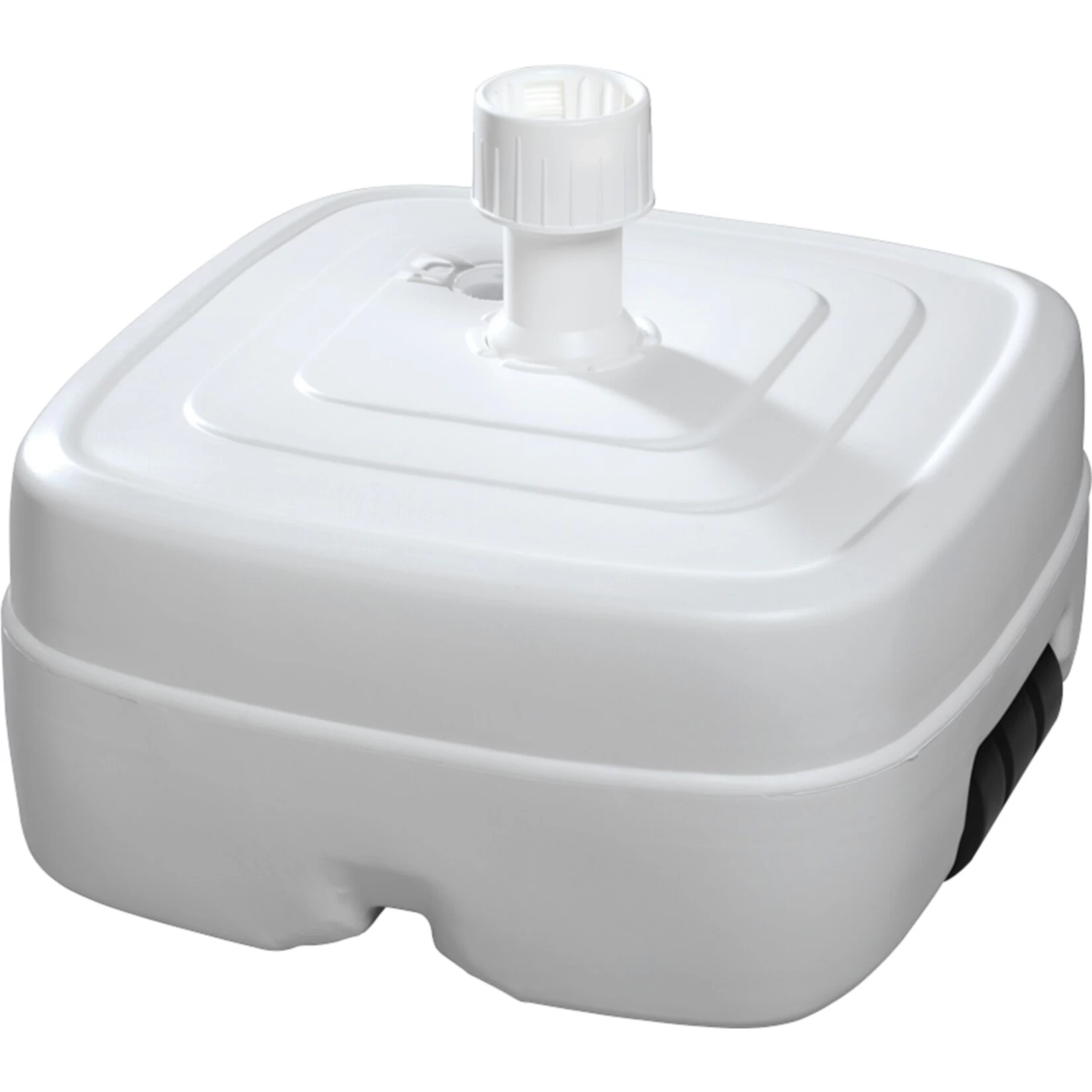 Der Schneider PE-Ständer bietet Marktschirmen mit einem Stockdurchmesser von 38 bis 50 mm einen sicheren Stand. Durch die angebrachte Rolle kann er leicht verschoben werden. Er kann wahlweise mit Wasser oder Sand befüllt werden und fasst ca. 45 Liter.
