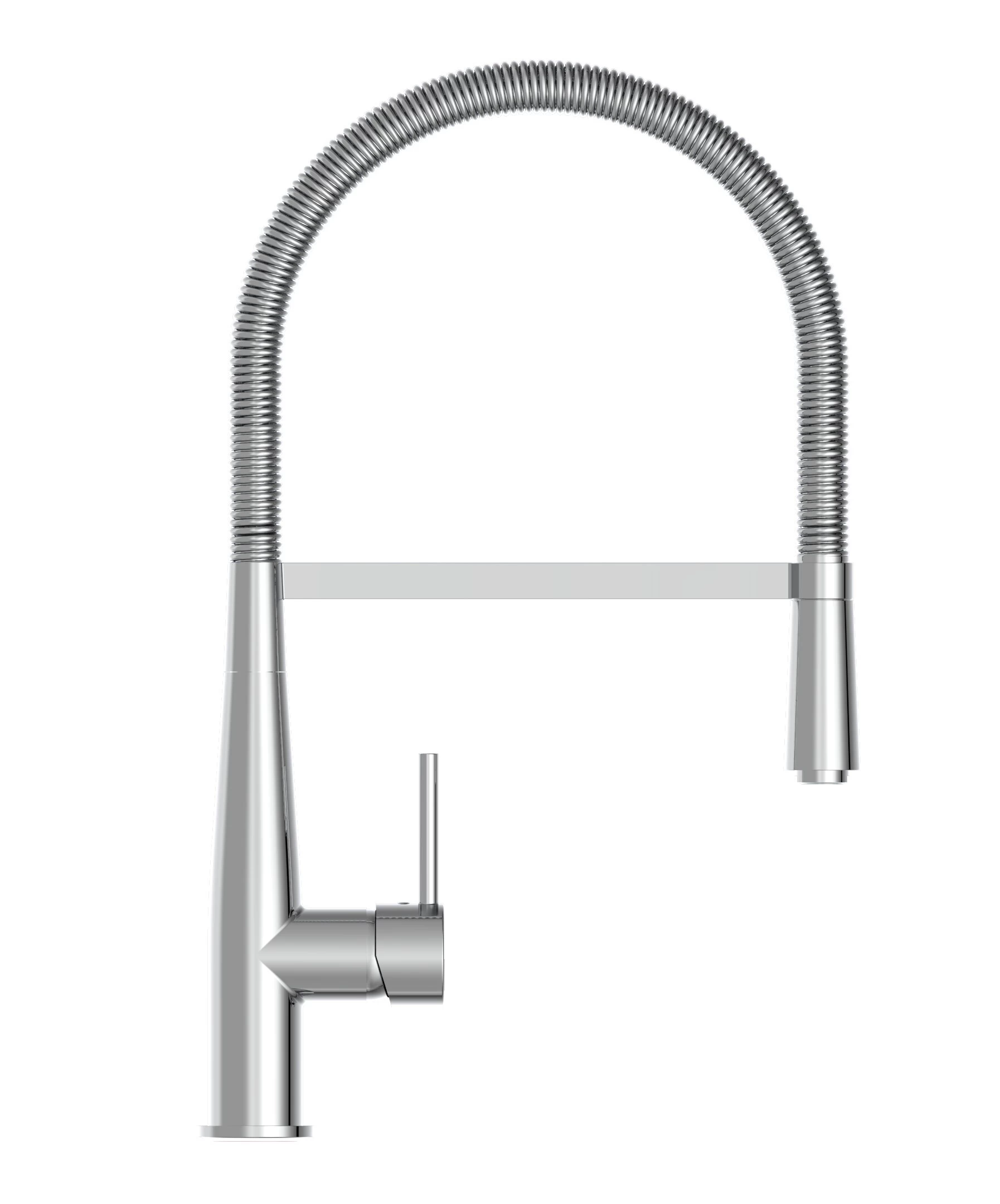 Exklusive Standarmatur mit hochwertigem Edelstahl-Spiralfeder-Auslauf – Blickfang für die Küche.