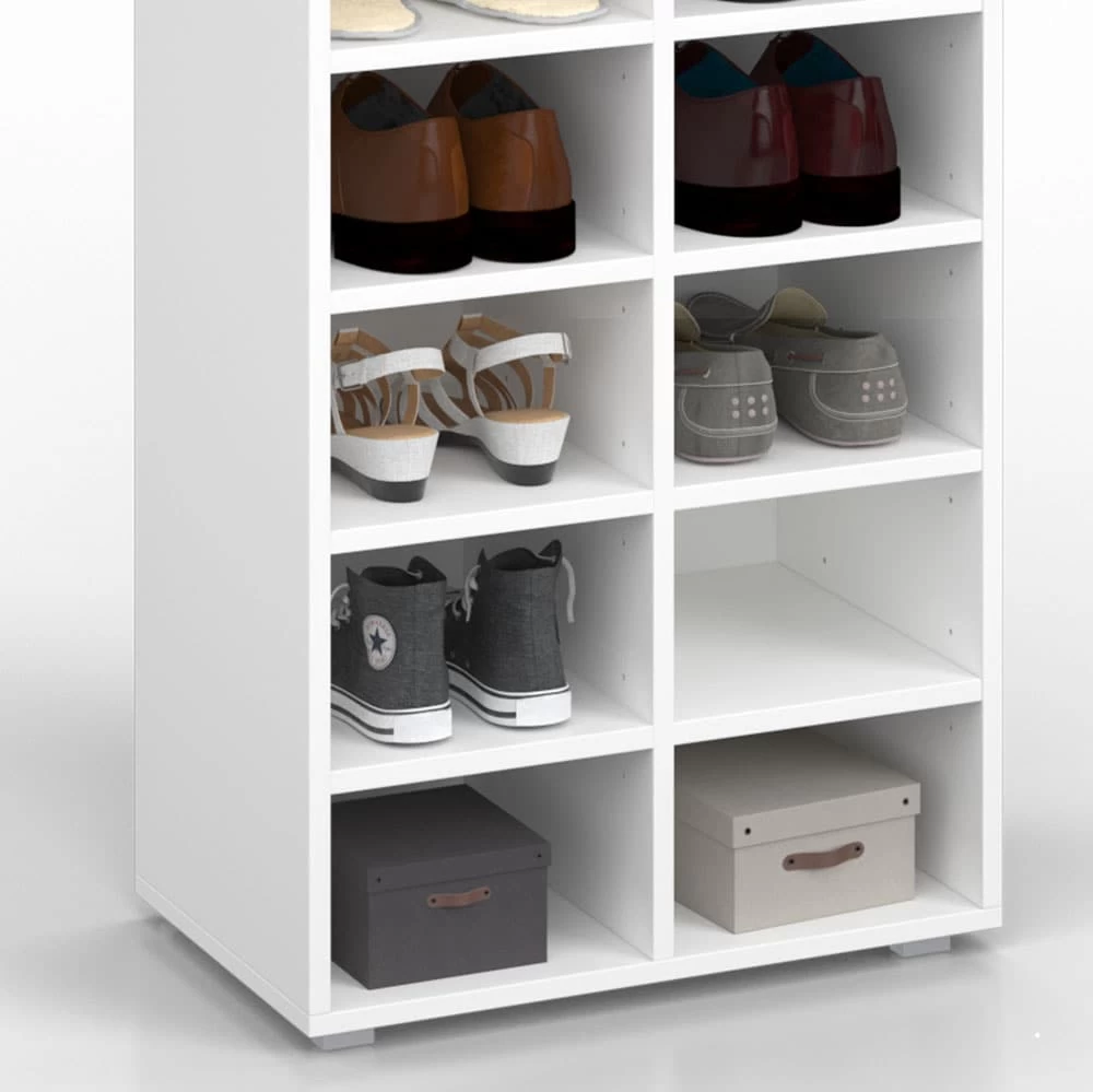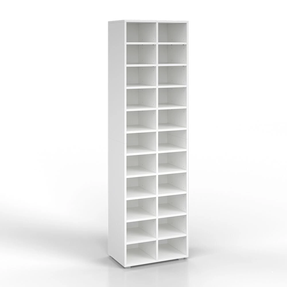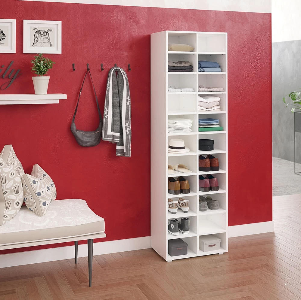 Ordnung auf einen Blick – die vielseitig einsetzbaren XXL-Regalkombinationen sind perfekt für Ihre Organisation von Schuhen, Sammlerstücken, Hobbyutensilien und allem was Ihr Herz gern ordentlich verstaut wissen will. Die 24 verstellbaren und herausnehmbaren Einlegeböden bieten Ihnen maximale Flexibilität. 36 offene Fächer mit einer Tiefe von 32,8 cm sind ideal für Aufbewahrungsboxen, die Lieblingssneaker oder Designerhandtaschen. Ob viele schmale oder große Fächer, richten Sie sich Ihre XXL-Regale Paris nach Belieben ein!