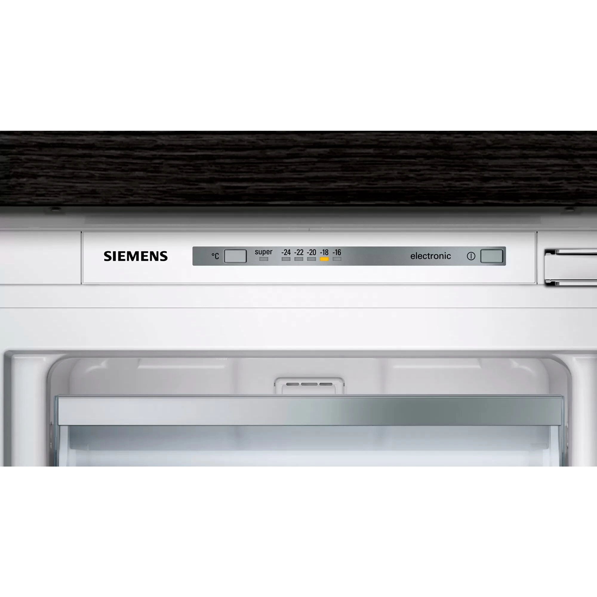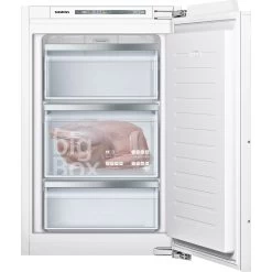 Der Einbau-Gefrierschrank GI21VADD0 stellt einen Gesamtnutzinhalt von 95 Litern zur Verfügung und lässt sich dank seiner kompakten Maße auch in kleine Küchen integrieren. Er ist mit drei transparenten Gefriergutschubladen ausgestattet, davon eine bigBox um großes Gefriergut optimal zu lagern und zu stapeln. Die lowFrost-Technologie mit ihrem Spezialverdampfer reduziert die Eisbildung auf ein Minimum, sodass Energie und Arbeit beim Abtauen gespart wird. Die SuperGefrieren-Funktion mit Eingefrierautomatik schützt bereits Gefrorenes beim Einlagern frischer, wärmerer Lebensmittel und freshSense sorgt im gesamten Innenraum für eine konstante Temperatur durch intelligente Sensortechnik. Die Tür des GI21VADD0 schließt dank softClosing automatisch und sanft, wenn der Öffnungswinkel maximal 20° beträgt. Mit einem Stromverbrauch von 140 kWh im Jahr ist der GI21VADD0 in die Energieeffizienzklasse D eingestuft.