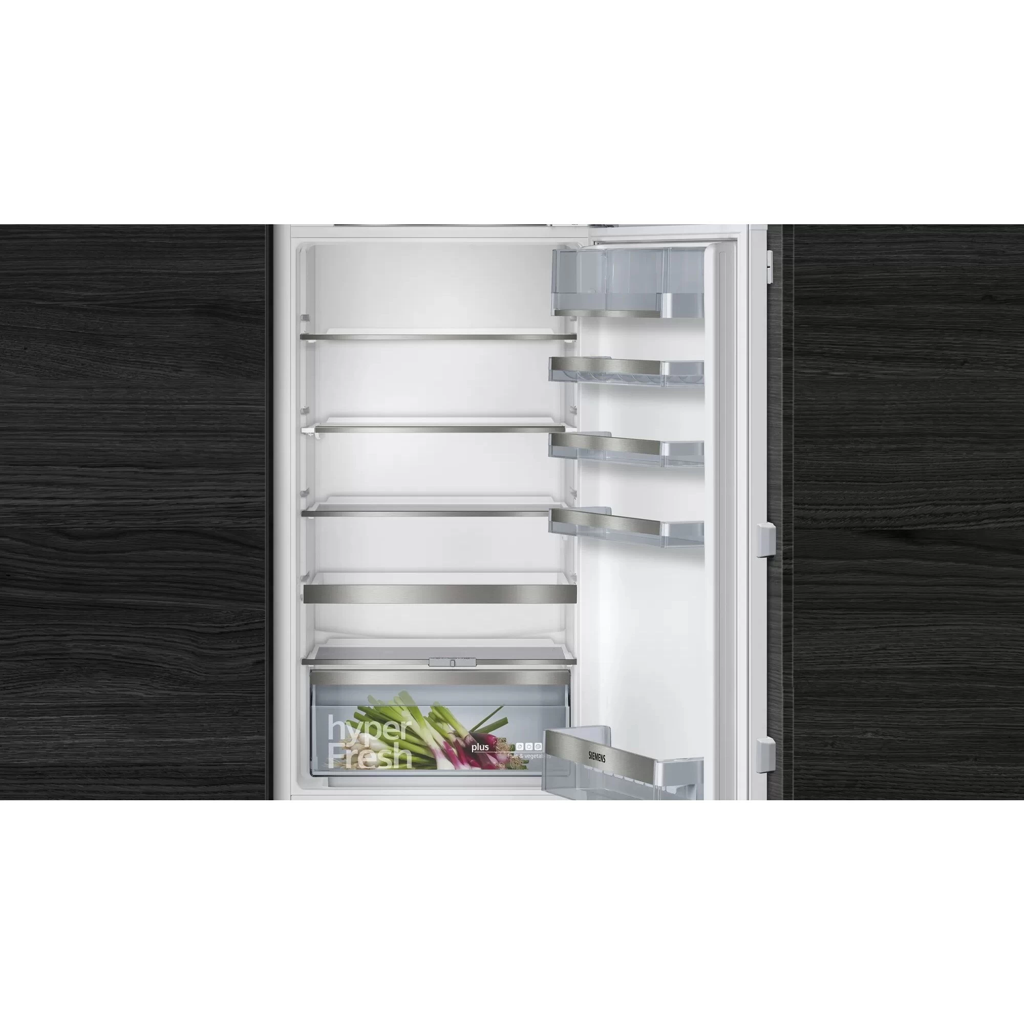 Die vollintegrierbare Kühl-/Gefrierkombination Siemens KI86SADE0 stellt einen Gesamtnutzinhalt von 266 Litern zur übersichtlichen Lagerung frischer Lebensmittel zur Verfügung und bietet viel Komfort. Der 192 Liter fassende Kühlraum ist mit fünf Abstellflächen aus Sicherheitsglas, davon vier höhenverstell- und eine ausziehbar, sowie fünf Türfächern, davon ein Butter-/Käsefach, ausgestattet. Die hyperFresh plus Box mit Feuchteregelung hält Obst und Gemüse bis zu zweimal länger frisch. Mit der SuperKühlen-Funktion wird die Temperatur im Kühlraum für eine eingestellte Zeit gesenkt, sodass beim Einlagern wärmerer Lebensmittel ein unerwünschter Temperaturanstieg bereits gekühlter Speisen verhindert wird. Der flexibel nutzbare Gefrierbereich der KI86SADE0 umfasst 74 Liter und stellt drei Gefriergutschubladen zur Verfügung, davon eine bigBox um großes Gefriergut optimal zu lagern und zu stapeln. Die geringere Eisbildung durch die LowFrost-Technologie spart Energie und Arbeit beim Abtauen und die intelligente Sensortechnik FreshSense sorgt im gesamten Kühlschrank für eine konstante Temperatur. Dank softClosing schließt die Tür automatisch und sanft, wenn der Öffnungswinkel maximal 20° beträgt. Mit einem Stromverbrauch von 219 kWh im Jahr ist die KI86SADE0 in die Energieeffizienzklasse E eingestuft.