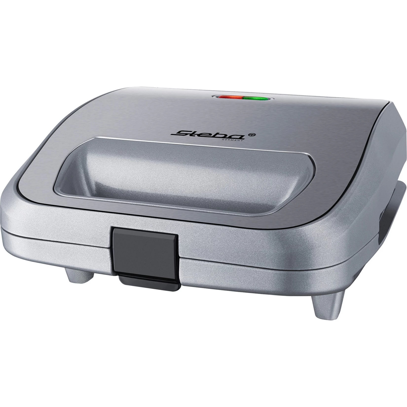 Der Multi-Snack Maker Steba SG 65 3in1 ist ein multifunktionelles Gerät und überzeugt mit einer Leistung von 750 Watt. Das Dreierset besteht aus antihaftbeschichteten Platten zum Grillen, Sandwich-Toasten und zum Waffelbacken. Die Platten lassen sich mit einem Easy-Click-Off-System auf Knopfdruck leicht entnehmen. Zur Sicherheit hat der Multi-Snack Maker SG 65 rutschfeste Gummifüße und eine Verriegelung am Handgriff.