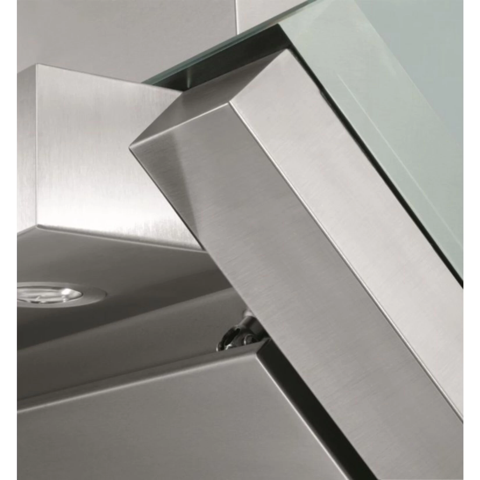 Dunstabzugshaube mit Randabsaugung „Kopffreihaube“ aus Edelstahl mit Glasschirm inkl. waschbaren Metallfettfilter (Spülmaschinenfest).