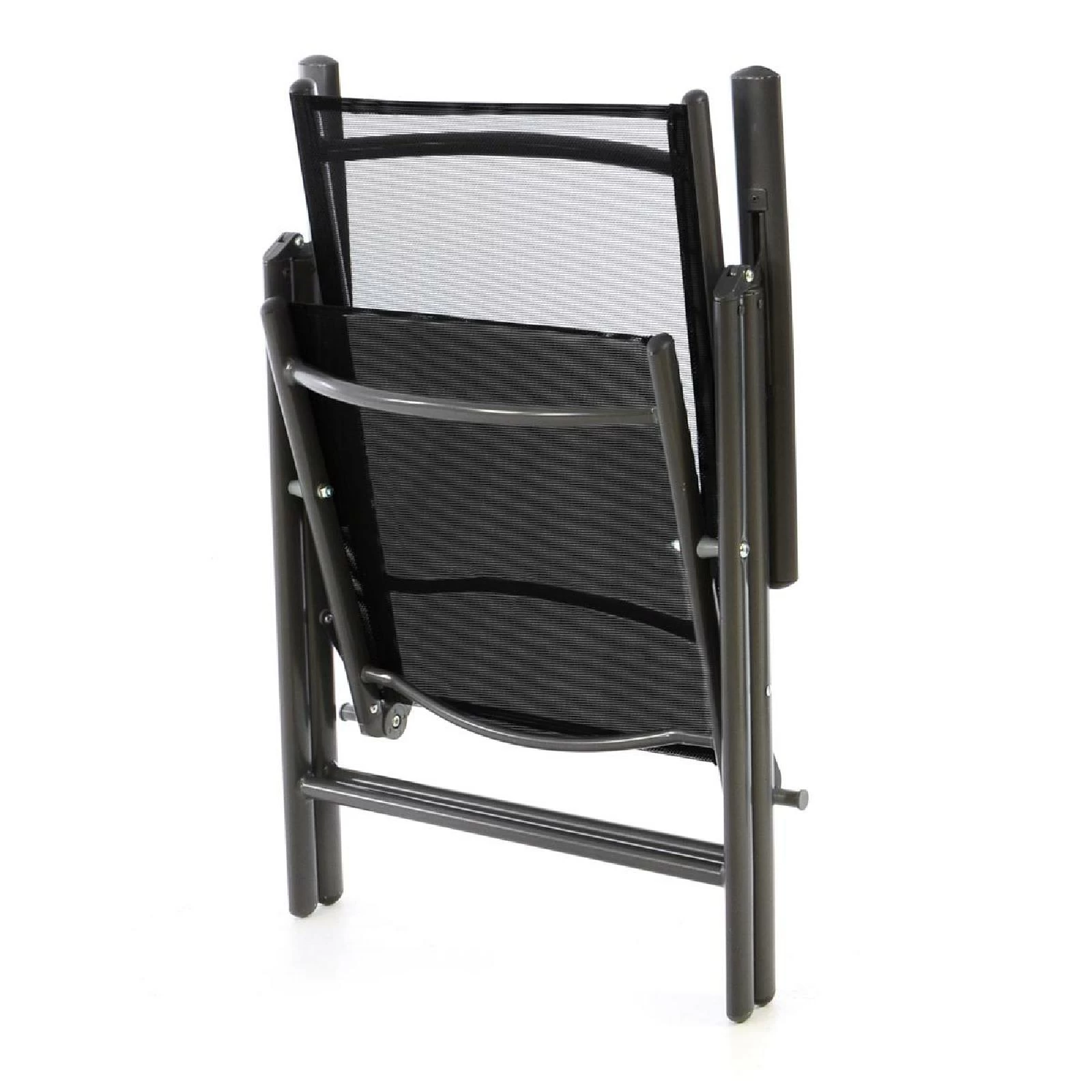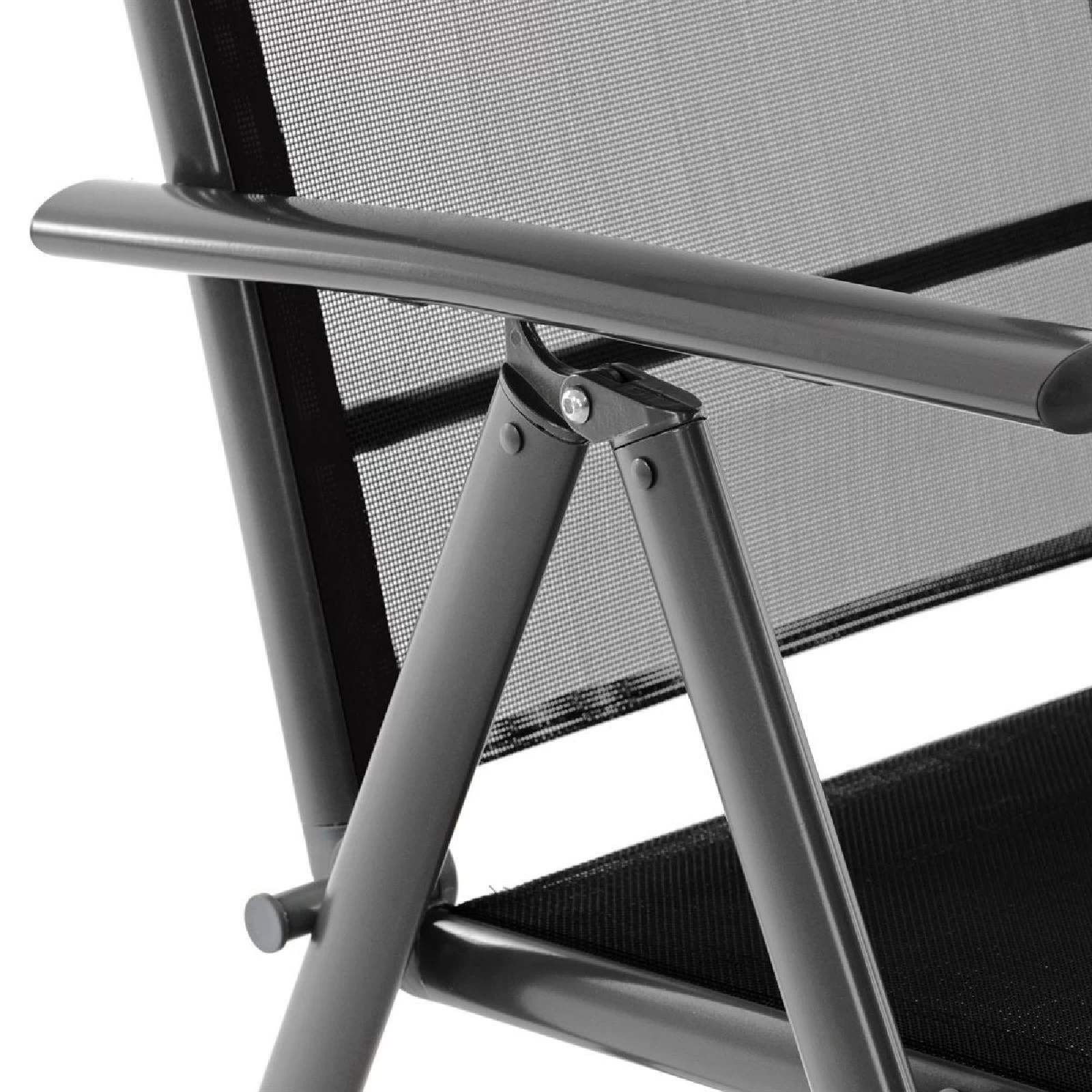 Wetterfester, stabiler anthrazitfarbener Aluminium-Rahmen und formbeständige Stuhlbespannung aus Textilene in schwarz
