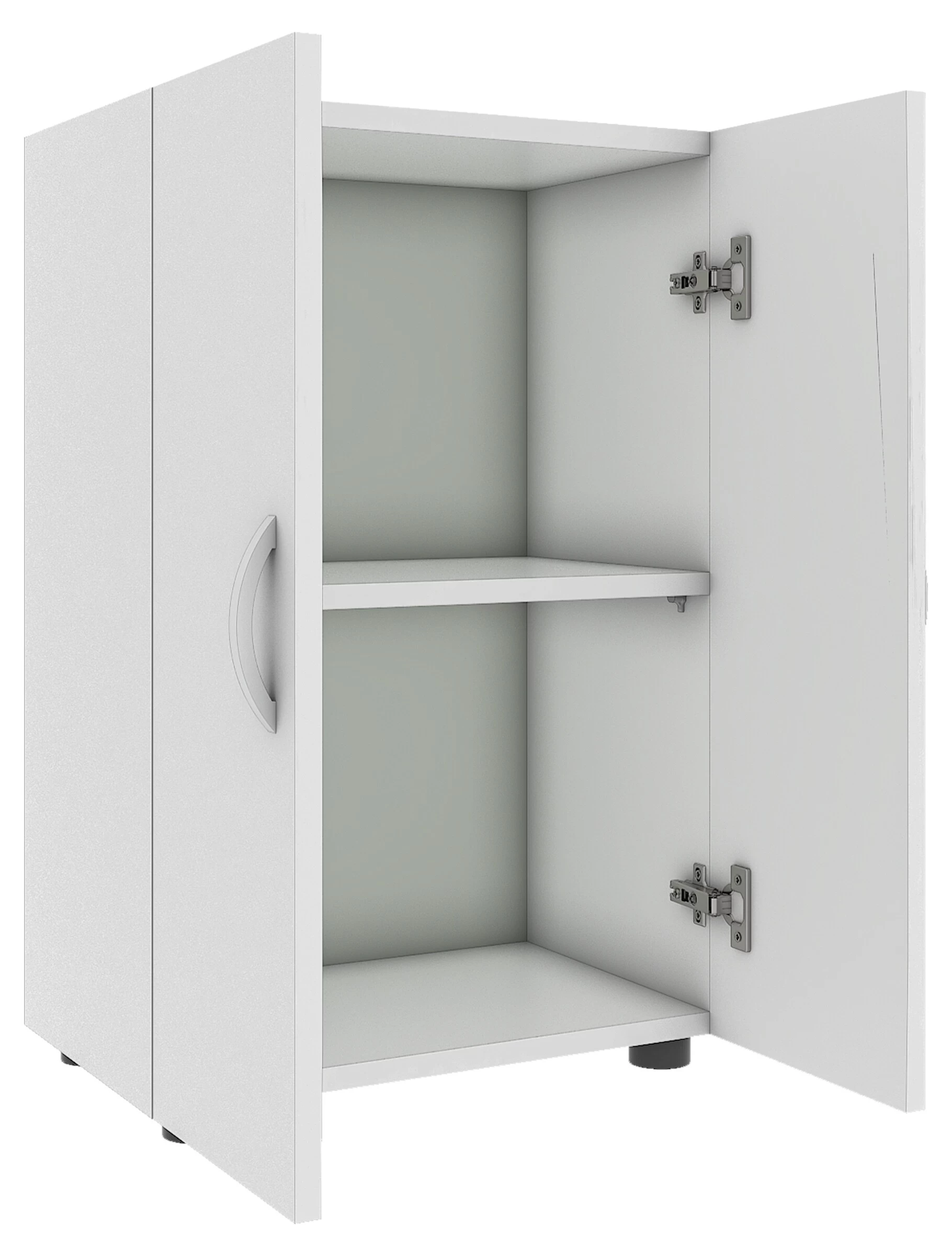 – Ein variabler Fachboden hinter zwei Drehtüren