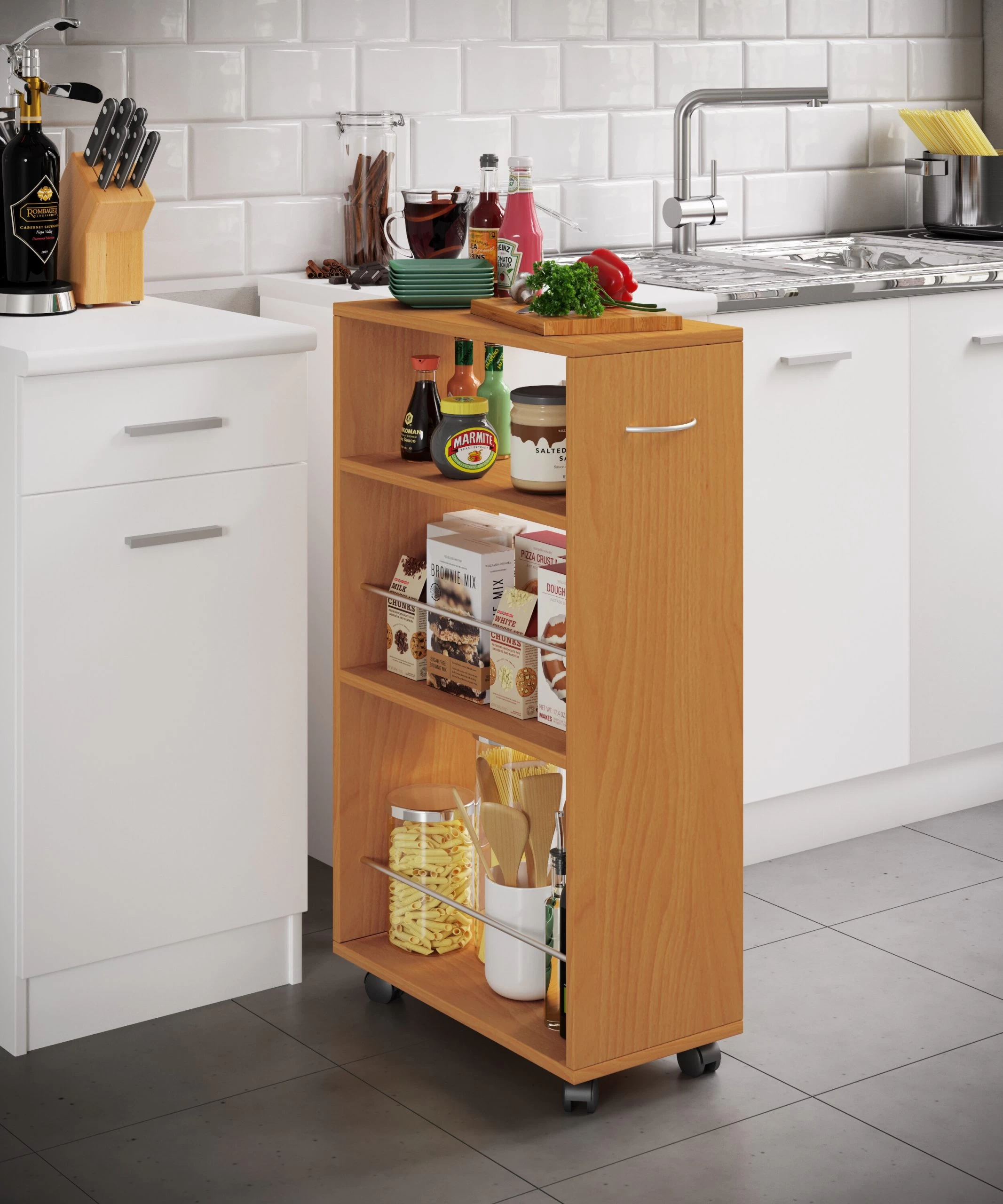 Praktischer und geräumiger Küchenwagen für ausreichend zusätzlichen Stauraum in Ihrer Küche.