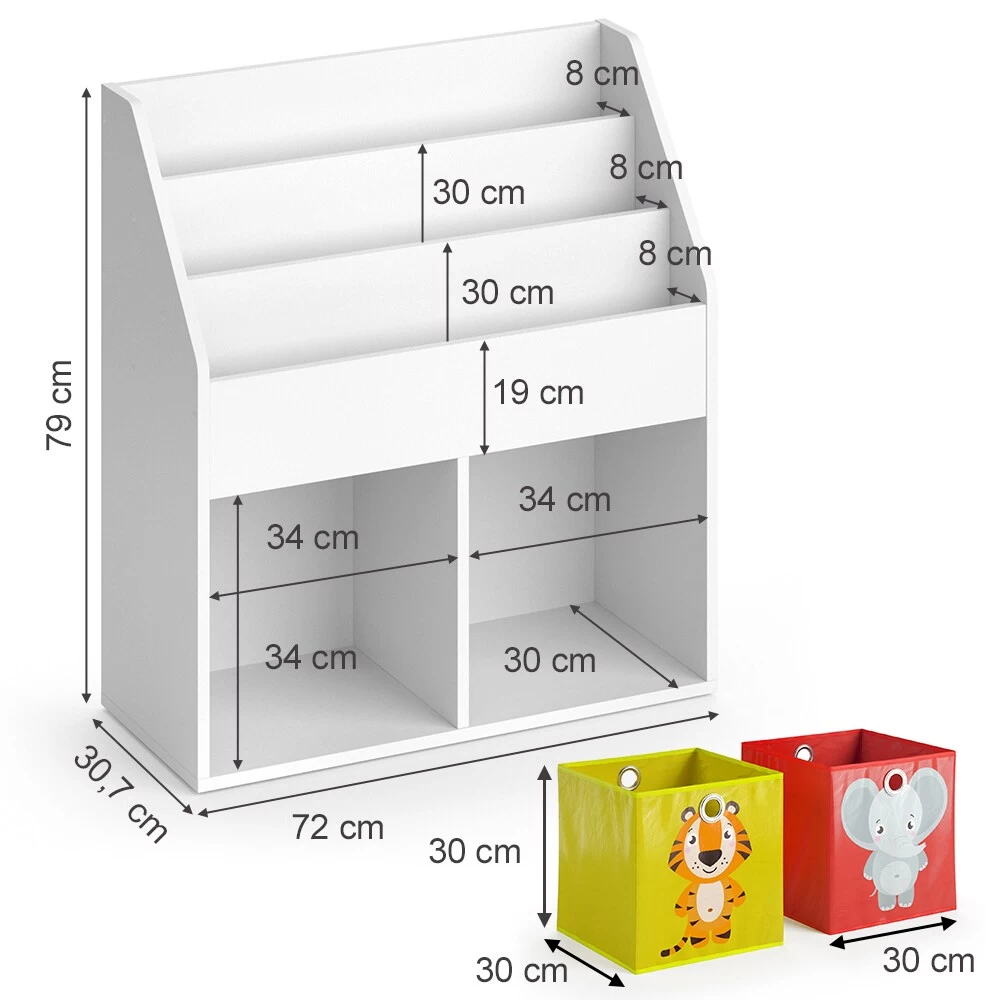 • Das Regal bietet ausreichend Platz mit seinen drei Fächern für die Lieblingsbücher Ihrer Kinder und den großen offenen Fächern in denen Sie Faltboxen platzieren können. Die zusätzliche Sitzmöglichkeit wird Sie begeistern.