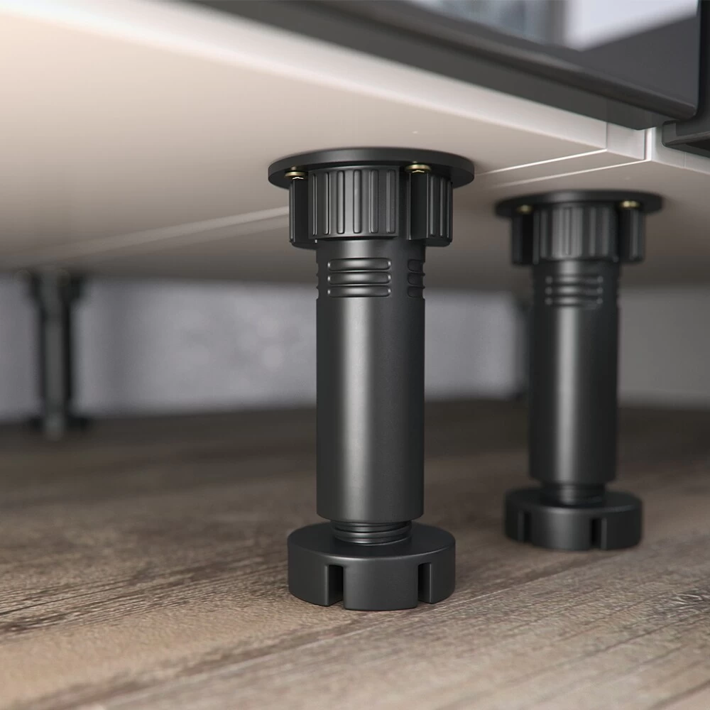 Die Schränke sind mit höhenverstellbaren Stellfüßen ausgestattet, dank denen sich Bodenunebenheiten mühelos ausgleichen lassen.