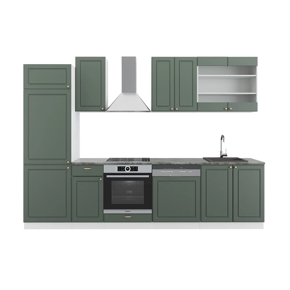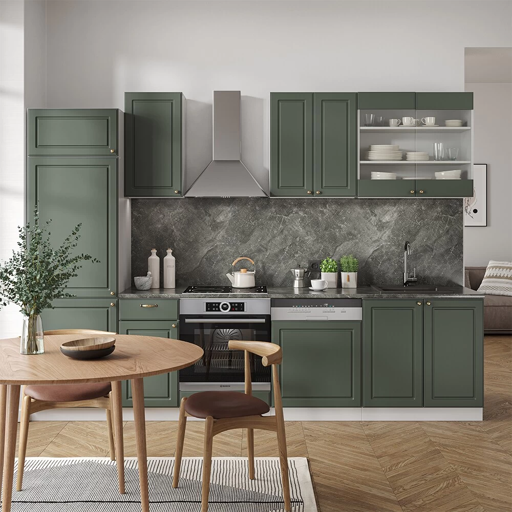 • Die hochwertigen Küchenfronten sind im klassischen Landhausstil gehalten und haben ein edles Design, welche hervorragend auf die jeweilige Korpusfarbe abgestimmt sind. Jedes einzelne Modul bietet zusätzlich höchsten Komfort in der Nutzung und Pflege.