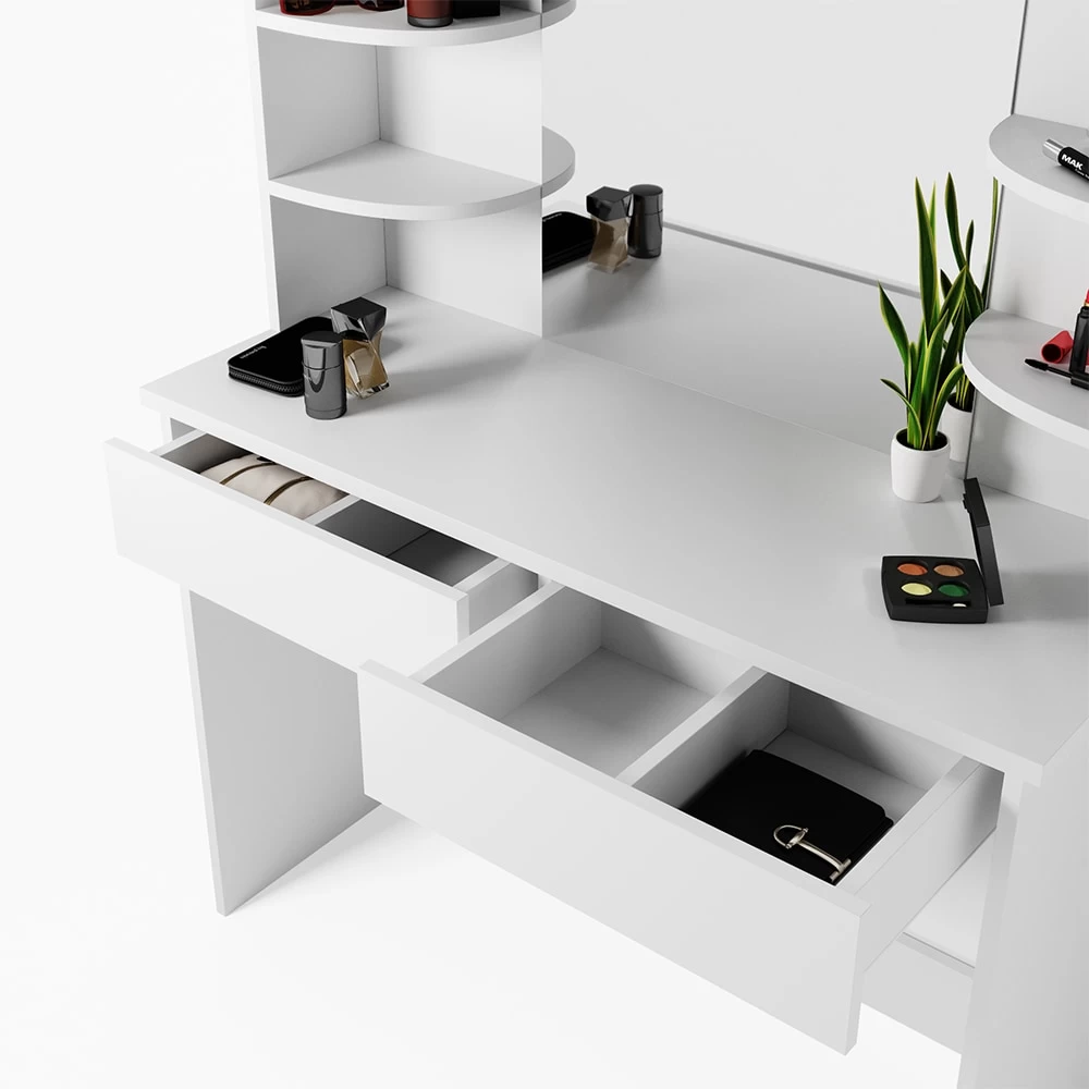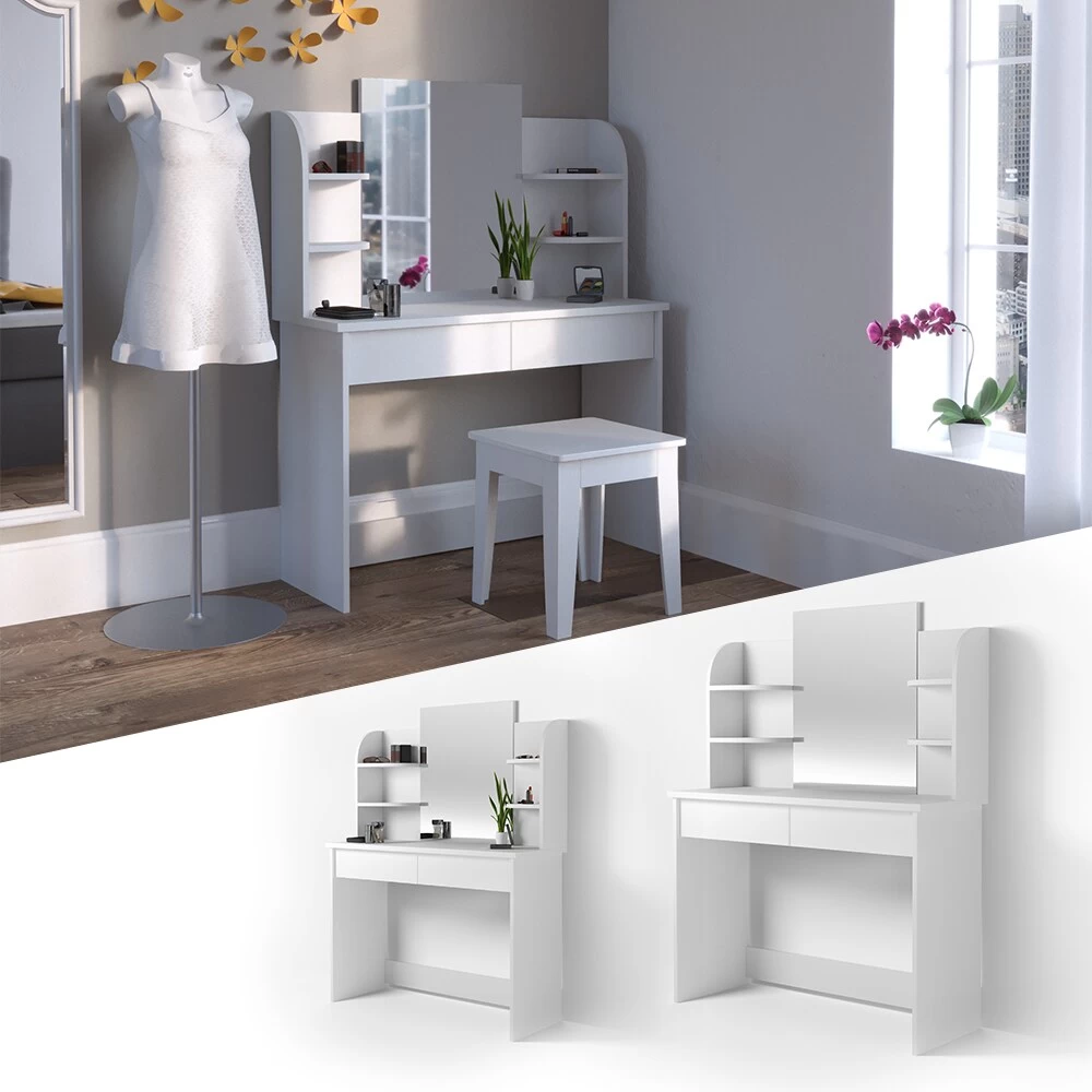 Die gradlinige Optik macht den Schminktisch zu einem stilsicheren Möbelstück, das jeden Raum aufwertet. Die hochwertige Verarbeitung rundet das Gesamtkunstwerk ab.