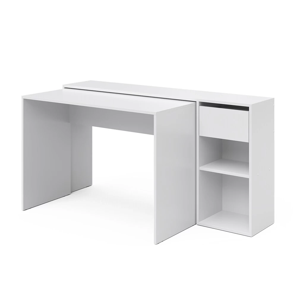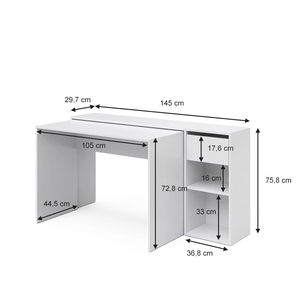 • Der ausziehbare Schreibtisch benötigt im kompakten Zustand nur wenig Stellfläche und schafft ausgezogen viel Arbeitsfläche.