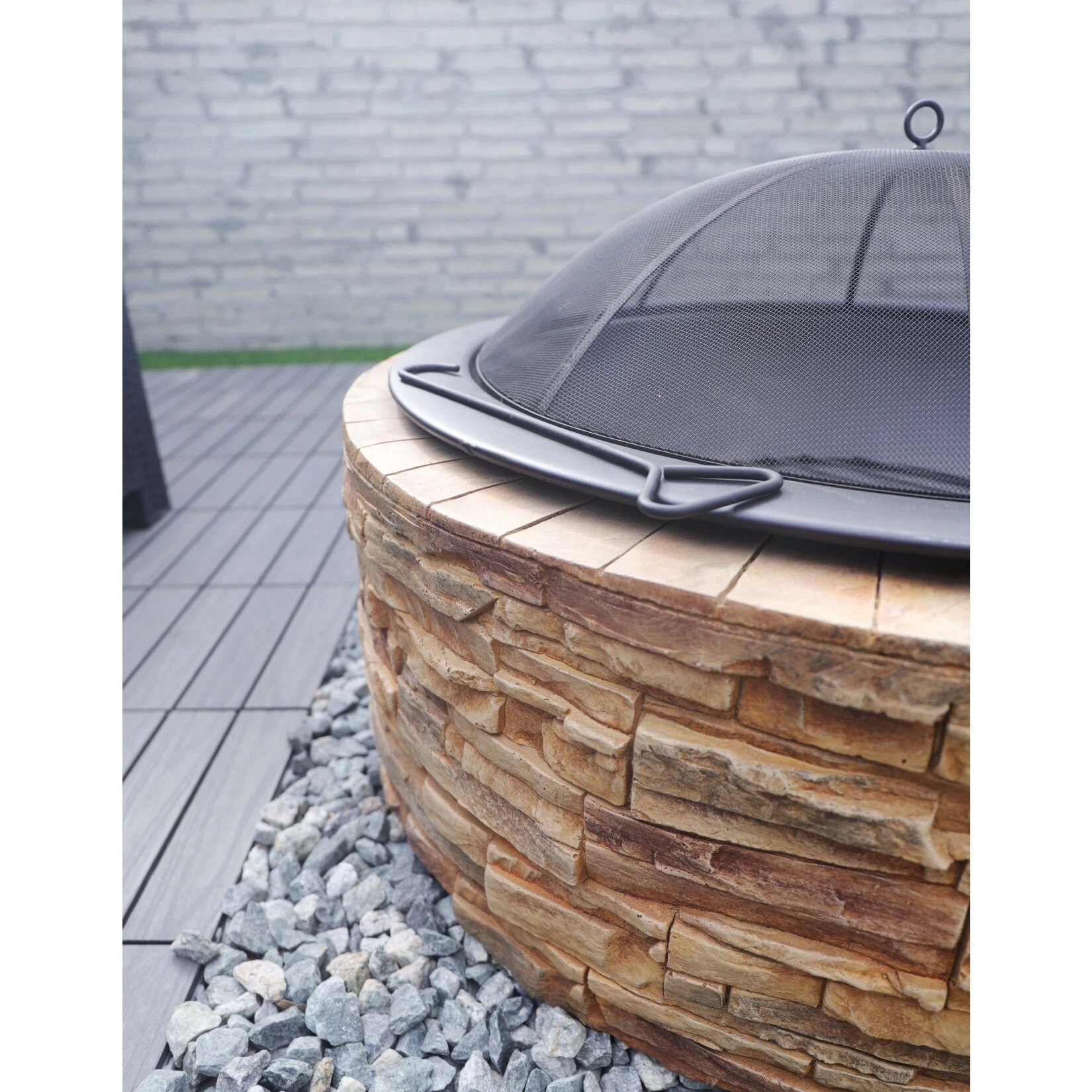 Die Westmann Feuerstelle ist ein ganz besonderer Hingucker für Ihren Außenbereich: Er besticht vor allem durch seine in Naturtönen gehaltene Steinoptik aus Magnesiumoxid. Die schwarze Feuerschale wiederum besteht aus besonders stabilem, langlebigem und pulverbeschichtetem Aluminium. Die mitgelieferte Funkenschutzhaube sorgt für zusätzliche Sicherheit.
